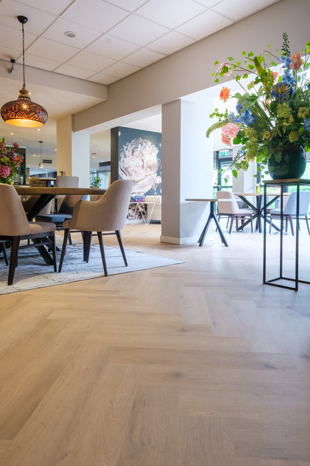 De visgraat planken uit de Belakos pvc-collectie zijn ideaal voor zowel moderne als klassieke interieurs. Het visgraatpatroon benadrukt een elegante en authentieke uitstraling. De Belakos pvc-vloeren zijn geschikt voor zowel woninginrichting als projectinrichting.