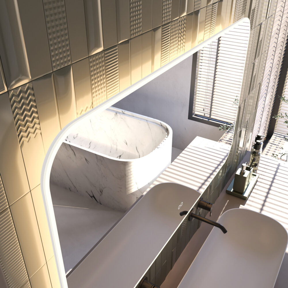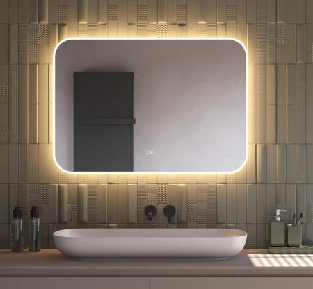 De spiegel is van alle gemakken voorzien, zoals: rondom directe en indirecte verlichting, spiegelverwarming en een dubbele touch schakelaar waarmee zowel de lichtkleur als de lichtsterkte kan worden ingesteld.