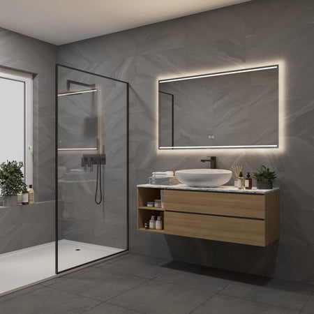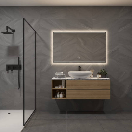 Met de 2 touch knoppen in het spiegelglas kan zowel de verlichting worden gedimd als de lichtkleur worden ingesteld tussen 2700K en 6400K. Zo creëer je in een handomdraai de juiste sfeer in de badkamer!