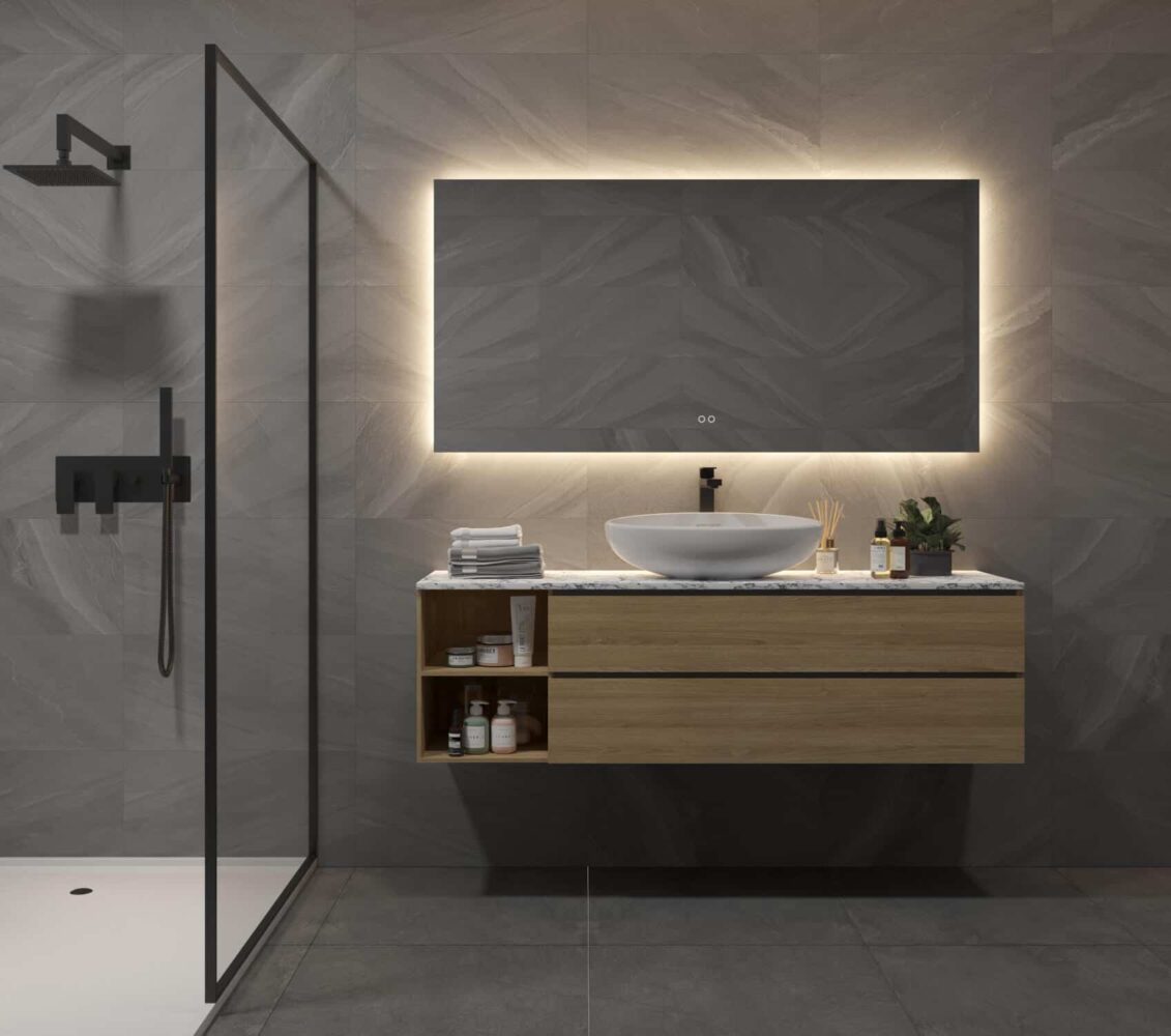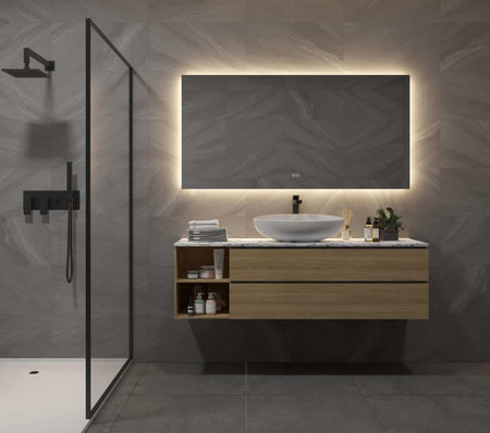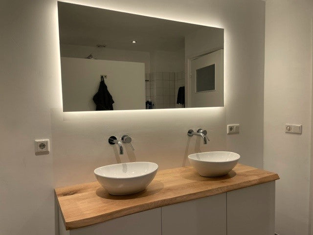 Daarnaast is deze spiegel 140 cm breed voorzien van spiegelverwarming en een dubbele touch schakelaar voor het instellen van de juiste lichtkleur en lichtsterkte. Zo creëert u zelf de gewenste sfeer!