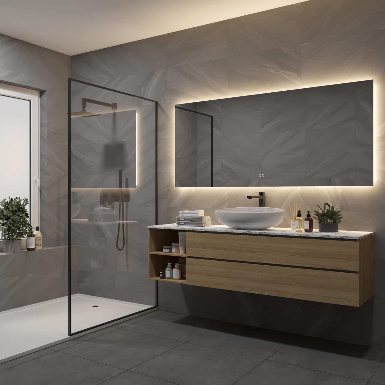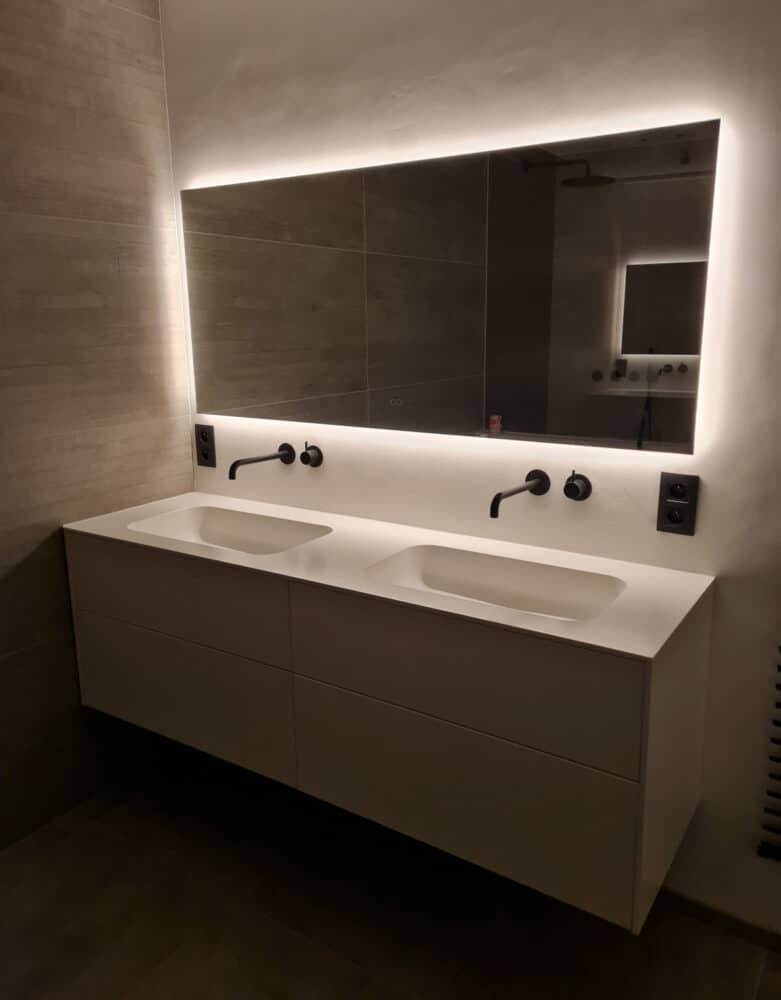 Daarnaast is de LED spiegel voorzien van spiegelverwarming, zodat er geen condens ontstaat na bv het douchen, handig! Met de 2 touch schakelaars wordt onder andere de verlichting gedimd en de gewenste lichtkleur ingesteld, zodat de juiste sfeer in de badkamer wordt gecreëerd. Optioneel kan de spiegel worden voorzien van een Bluetooth muzieksysteem.
