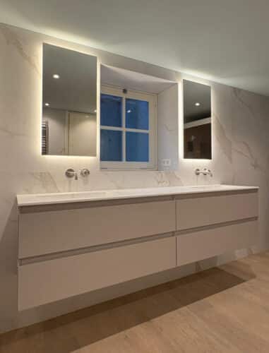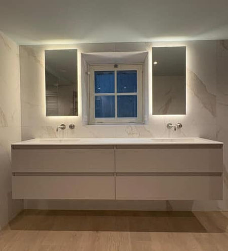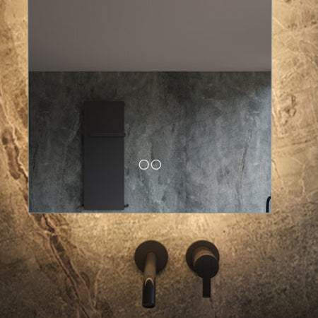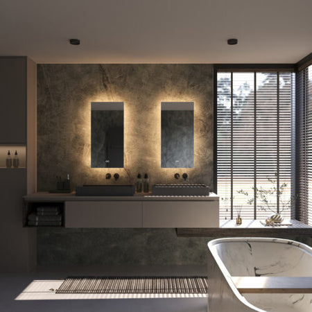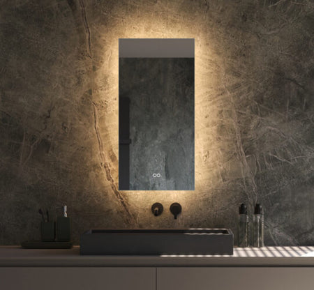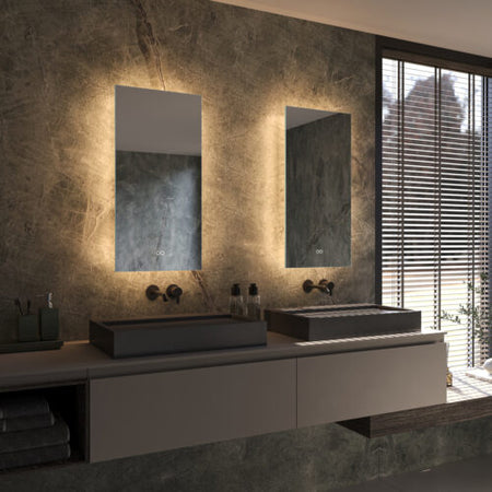 Deze trendy, verticale badkamerspiegel heeft een breedte van 40 cm en een hoogte van 80 cm. De dimbare verlichting schijnt vanachter de spiegel rondom over de wand. Hiermee creëer je veel sfeer in de badkamer!