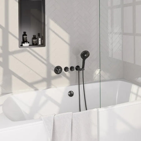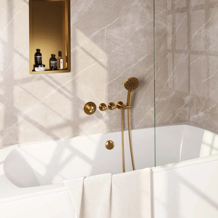 In één keer klaar zijn na het kopen van jouw bad? Dan is deze inbouw badkraan met badvulcombinatie zeker een kijkje waard. Deze inbouwkraan van Brauer is helemaal compleet met thermostaat, 2 stopkranen, een badvulcombinatie, staafhanddouche of 3-standen, doucheslang en wandaansluitbocht. Door de badvulcombinatie kun je ook gelijk de afvoer afvinken. Deze badvulcombinatie is namelijk een afvoer, waarmee je ook gelijk het bad kan vullen.