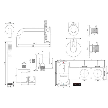 Brauer carving thermostatische inbouw badkraan met uitloop - verkrijgbaar in 6 kleuren