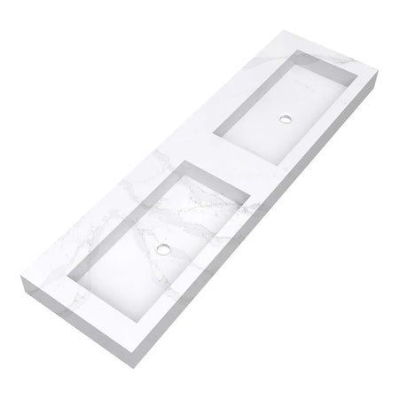 BRAUER Coral wastafel 160x46cm - 2 wasbak - 0 of 2 kraangat - marmerlook - Calacatta gold, copper brown en nero marquina