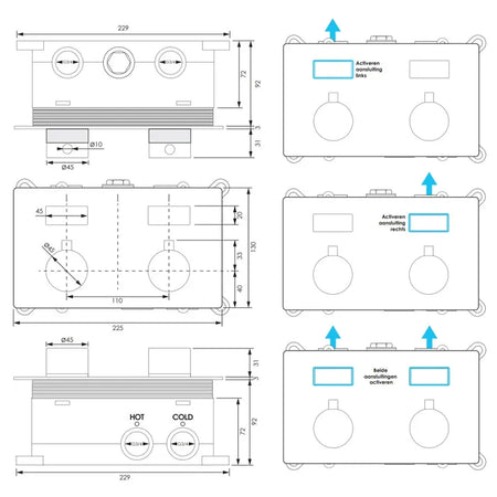 - Inbouwdiepte inbouwbox: 7.2 - 9.2 cm