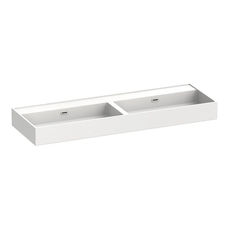 BRAUER Gravity wastafel 140x46cm - 2 wasbakken - 0 of 2 kraangat - mineraalmarmer - zijdeglans wit