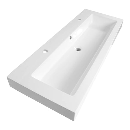 BRAUER Solar thick wastafel 120x46cm - enkel of dubbele wasbak - 0 t/m 2 kraangat - mineraalmarmer - zijdeglans wit