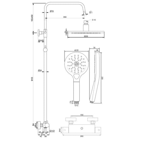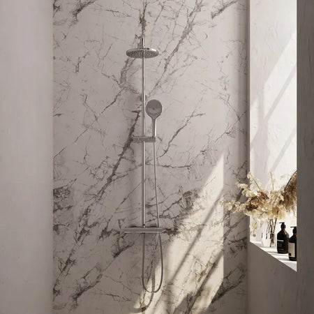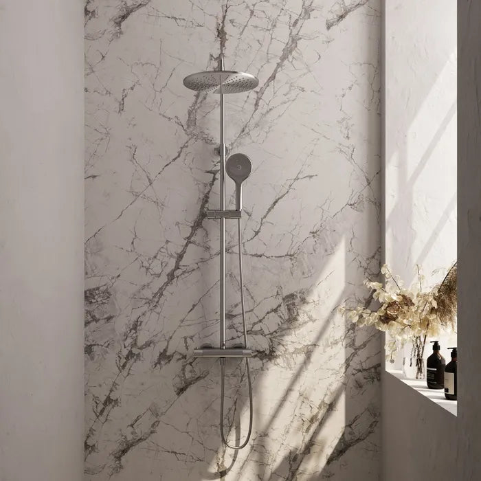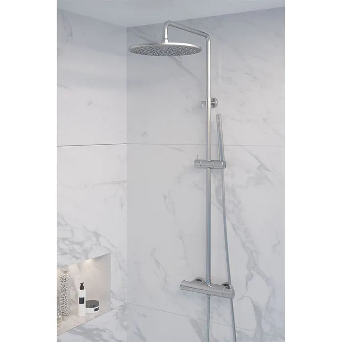 Deze opbouw regendouche is een complete doucheset in verschillende kleuren. De douche straalt luxe uit en is zeer comfortabel. Door middel van de knoppen bedien je deze inbouwdouche. De temperatuur regel je met de rechter draaiknop. Met de linker draaiknop switch je tussen de hand- en hoofddouche en bepaal je de gewenste douchestand. Op 38 graden zit een beveiliging waardoor deze douche ook veilig is voor kinderen.