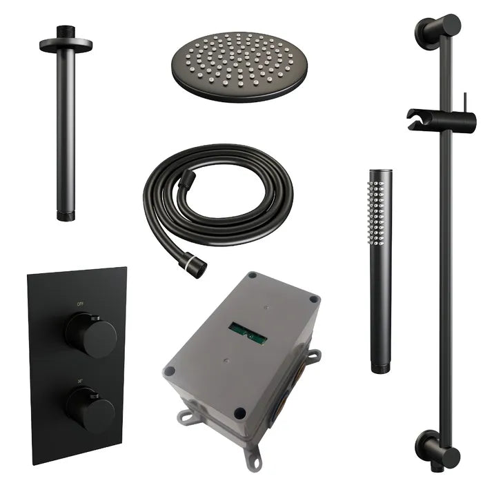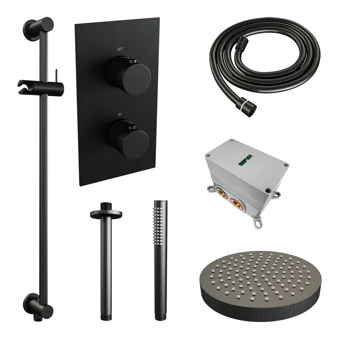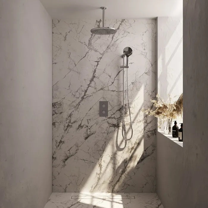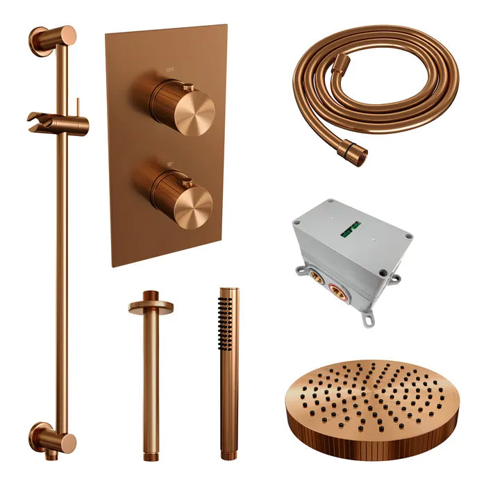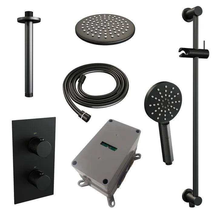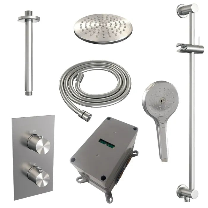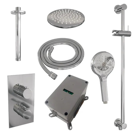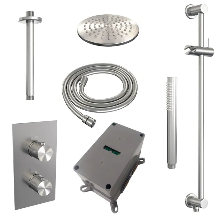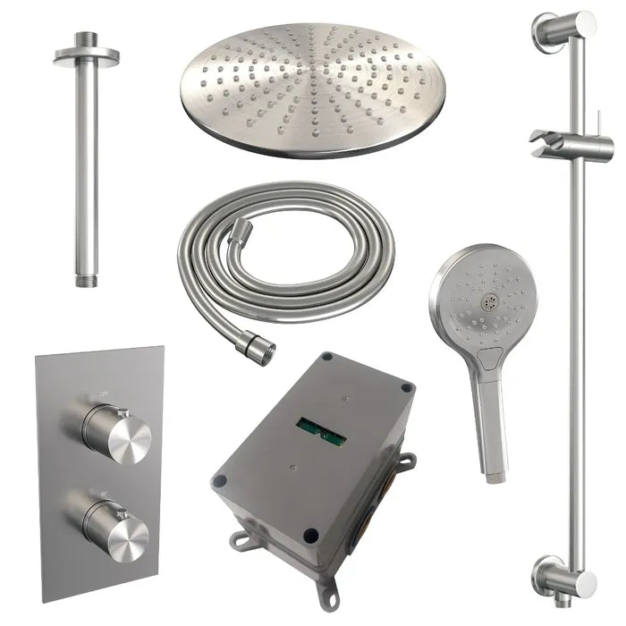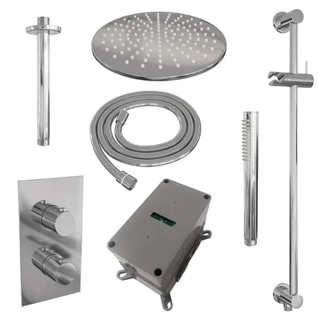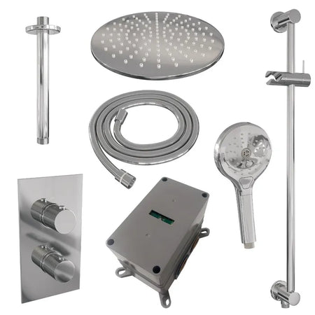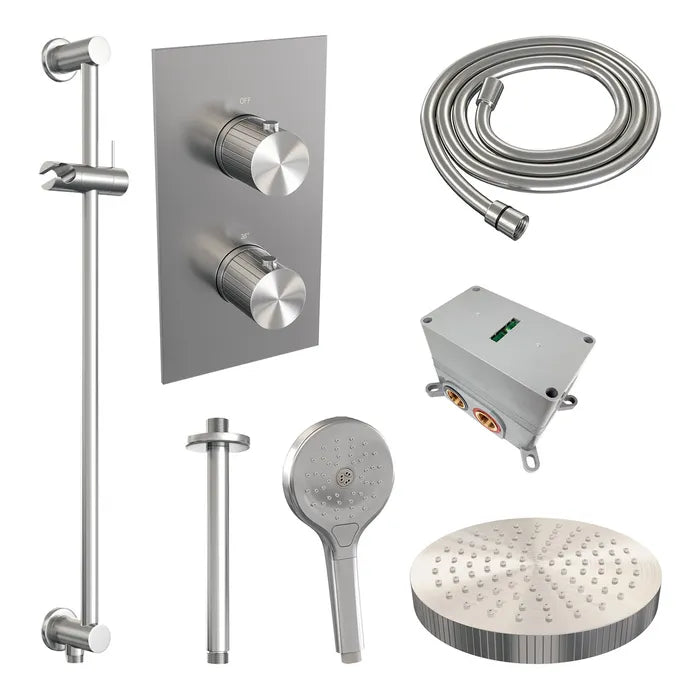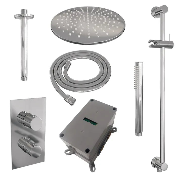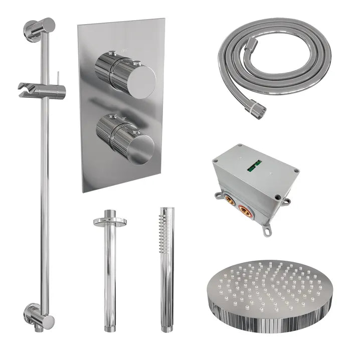 Deze inbouw regendouche is een complete inbouwdouche set waarmee je je badkamer laat schitteren. De douche straalt luxe uit en is zeer comfortabel. Met de inbouwthermostaat bepaal je je gewenste temperatuur. Ook zit er temperatuurbegrenzing op waardoor het water eerst niet warmer wordt dan 38 graden, maar pas wanneer de beveiliging eraf wordt gehaald. Extra veilig voor de kids! Met de stopkranen switch je tussen de hoofd- en en handdouche.