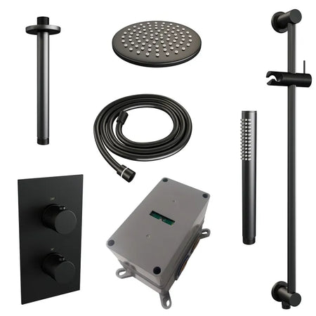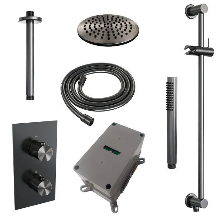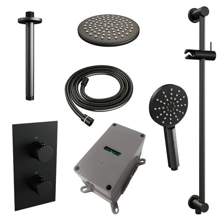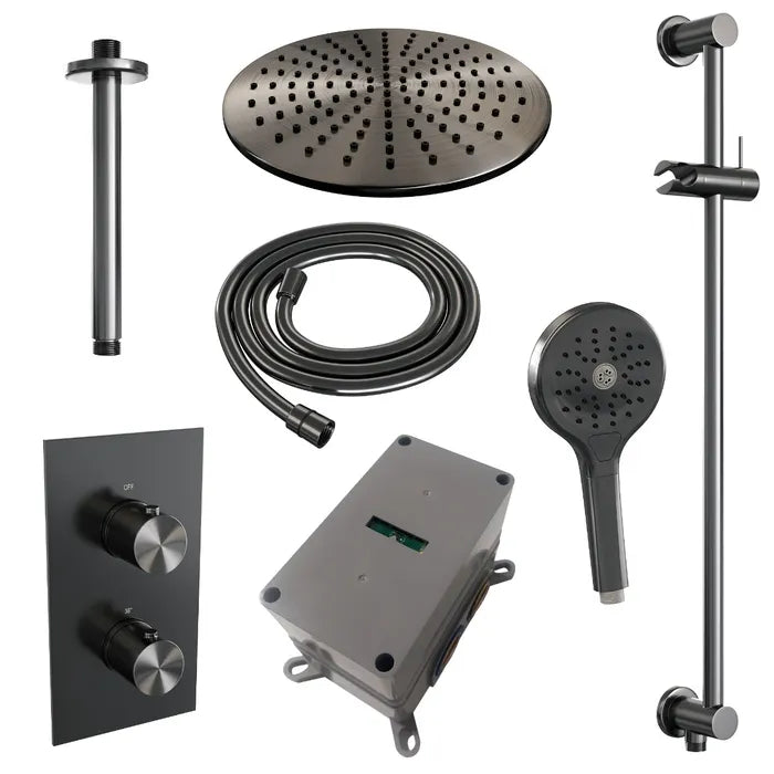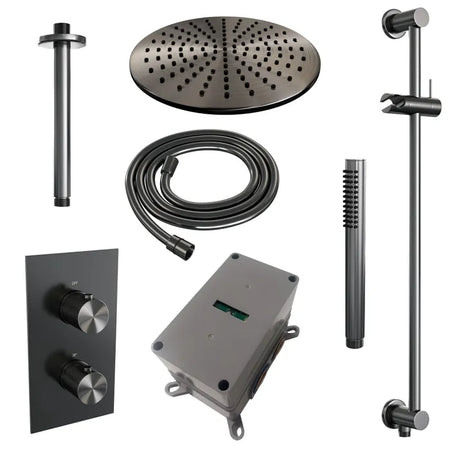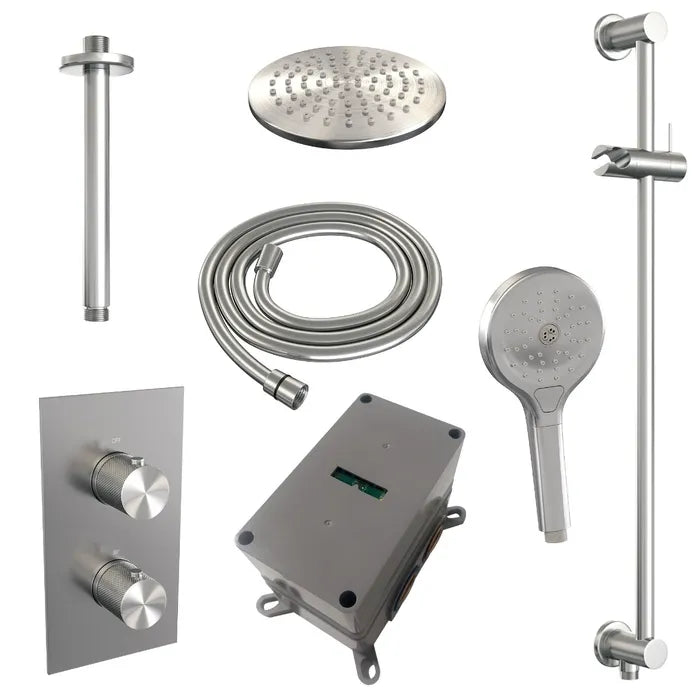 Brauer thermostatische inbouw regendouche met 3-weg omstel - edition, carving of stripe - in verschilleden kleuren - met glijstang - met plafondarm