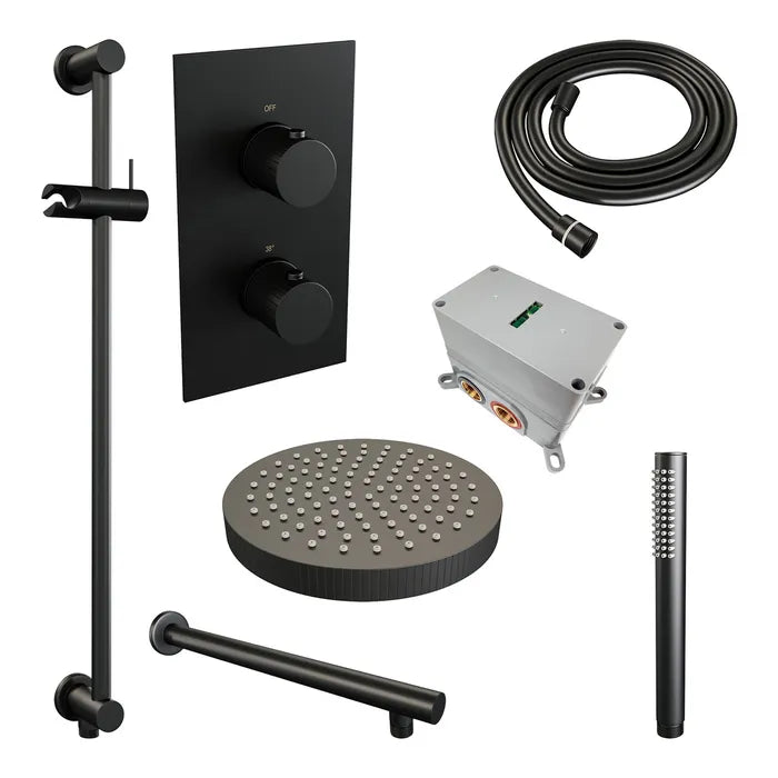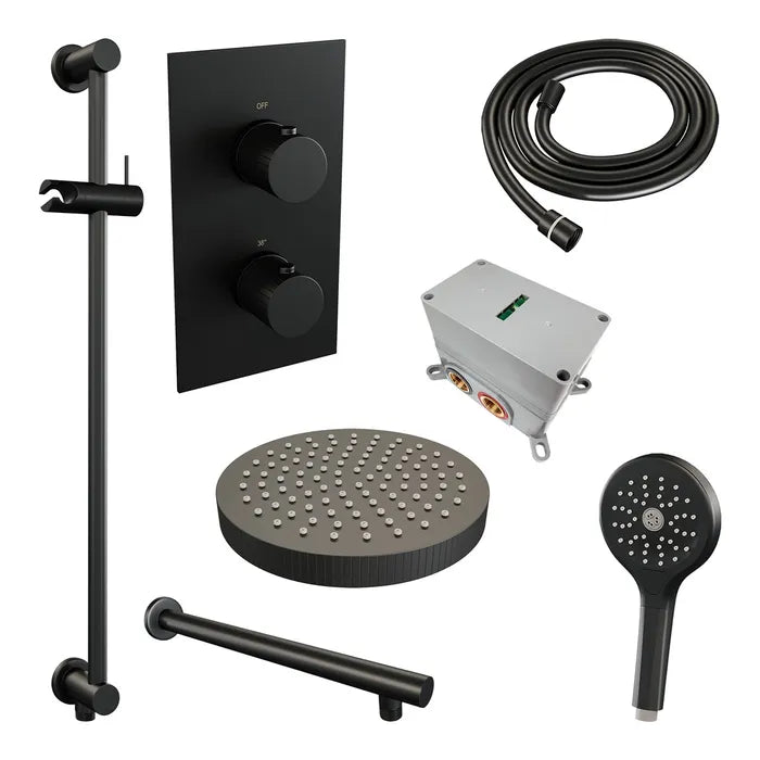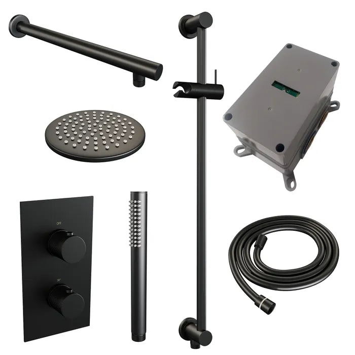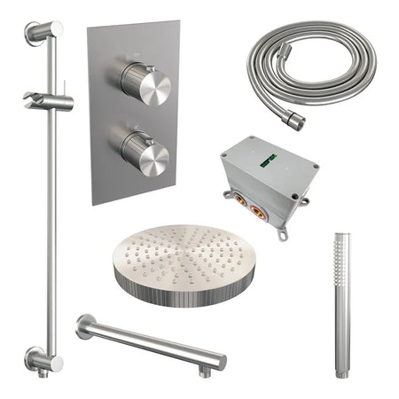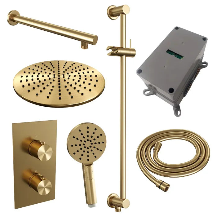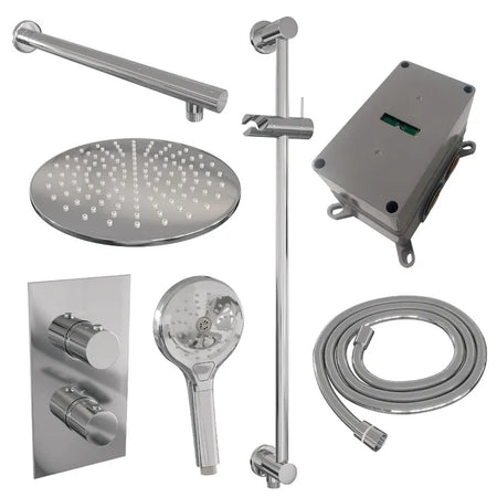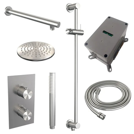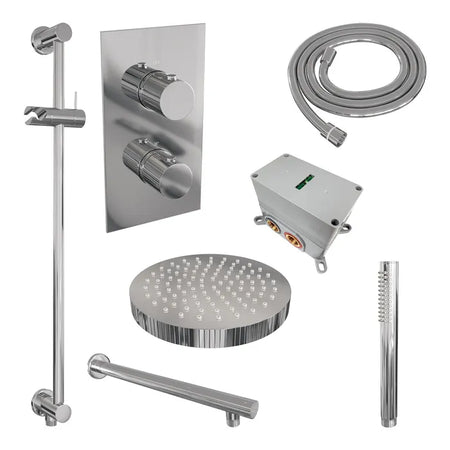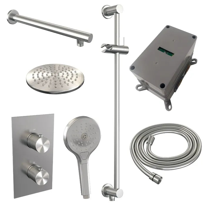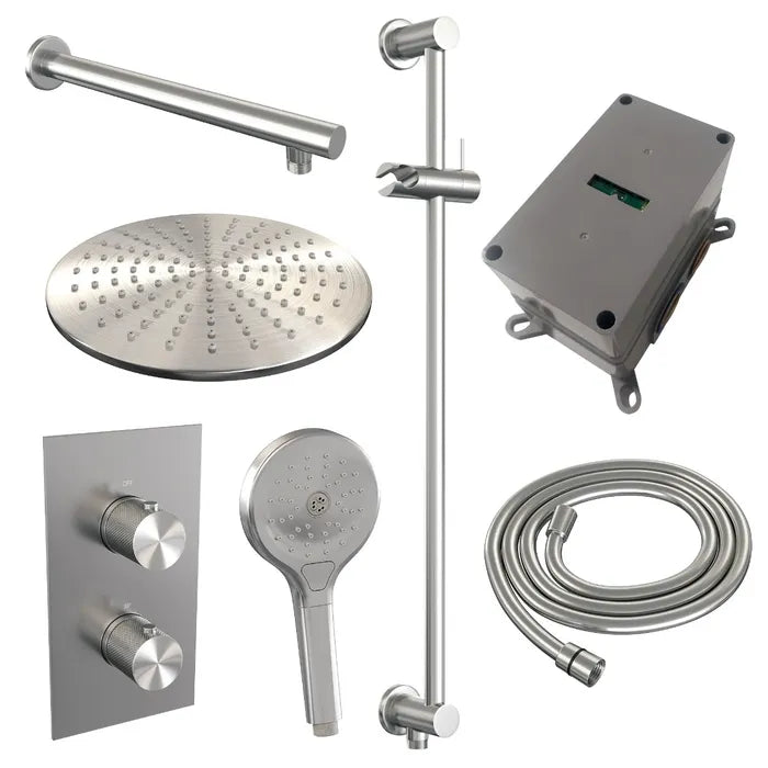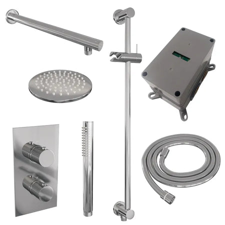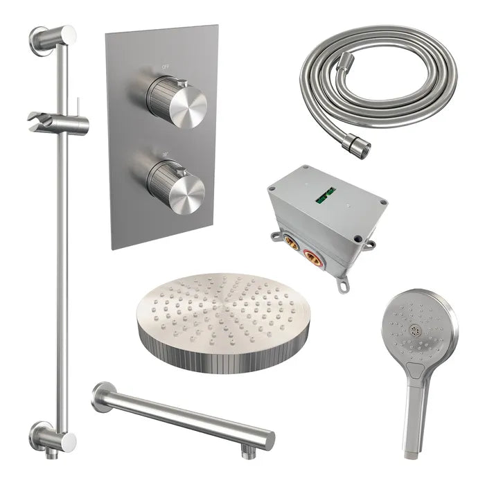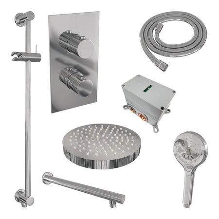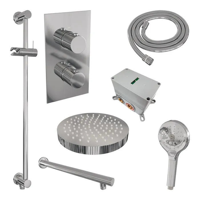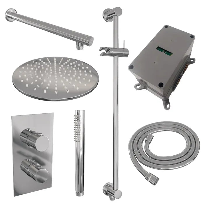 Deze inbouw regendouche is een complete inbouwdouche set waarmee je je badkamer laat schitteren. De douche straalt luxe uit en is zeer comfortabel. Met de inbouwthermostaat bepaal je je gewenste temperatuur. Ook zit er temperatuurbegrenzing op waardoor het water eerst niet warmer wordt dan 38 graden, maar pas wanneer de beveiliging eraf wordt gehaald. Extra veilig voor de kids! Met de stopkranen switch je tussen de hoofd- en en handdouche.
