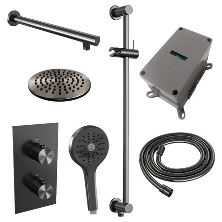 Brauer thermostatische inbouw regendouche met 3-weg omstel - edition, carving of stripe - in verschilleden kleuren - met glijstang - met rechte muurarm