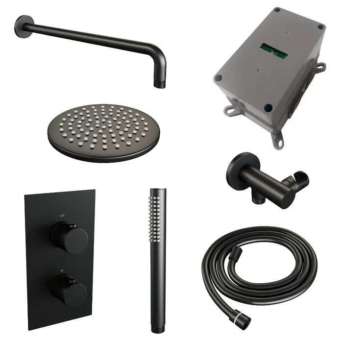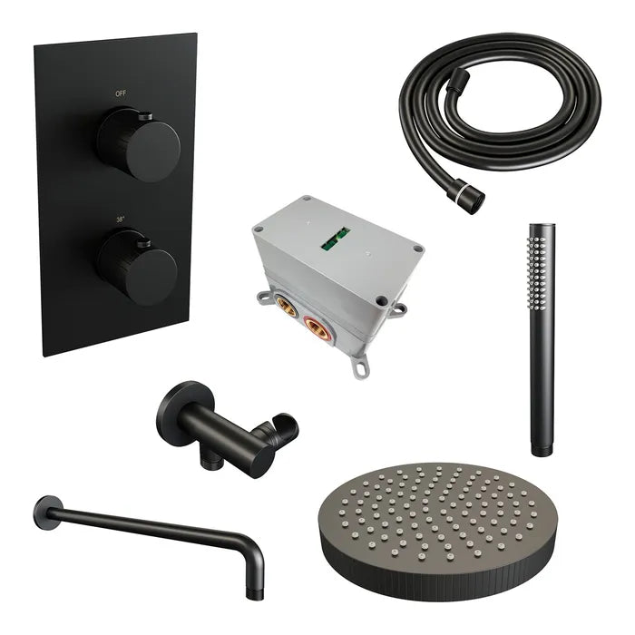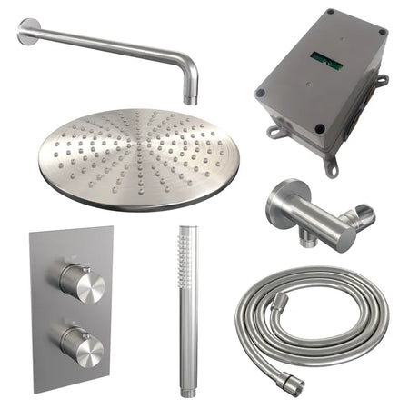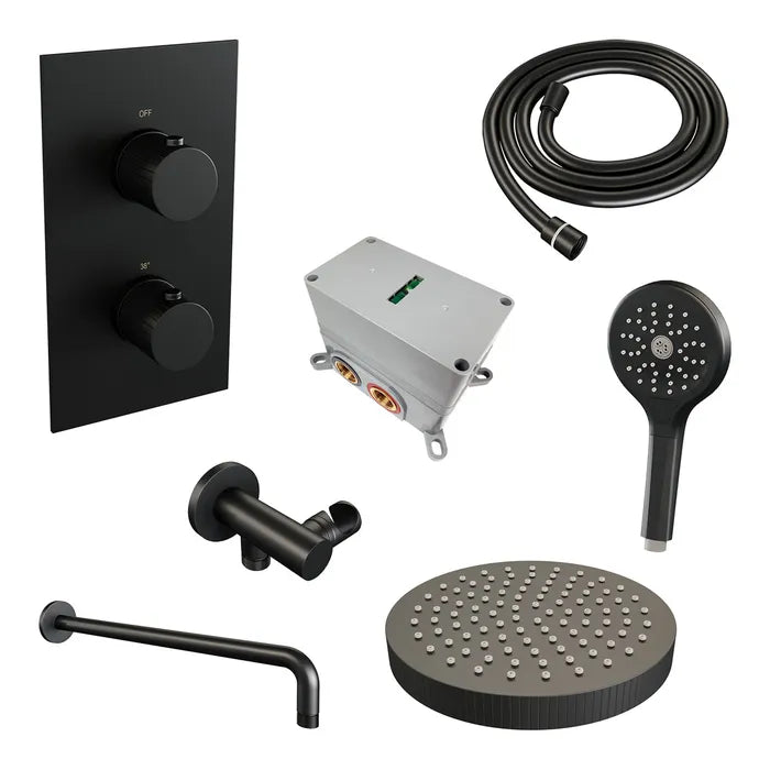 Deze inbouw regendouche is een complete inbouwdouche set waarmee je je badkamer laat schitteren. De douche straalt luxe uit en is zeer comfortabel. Met de inbouwthermostaat bepaal je je gewenste temperatuur. Ook zit er temperatuurbegrenzing op waardoor het water eerst niet warmer wordt dan 38 graden, maar pas wanneer de beveiliging eraf wordt gehaald. Extra veilig voor de kids! Met de stopkranen switch je tussen de hoofddouche en handdouche.