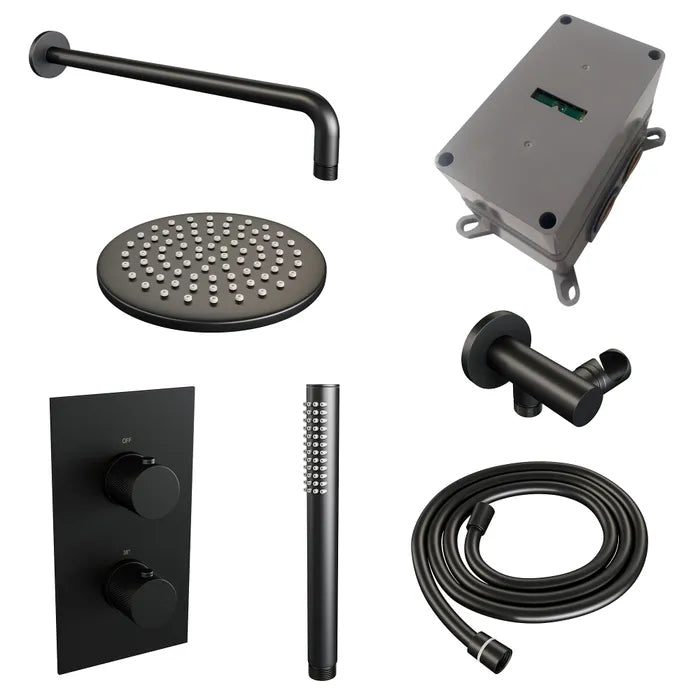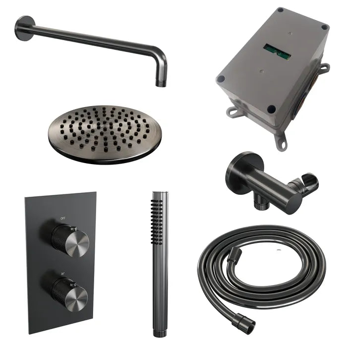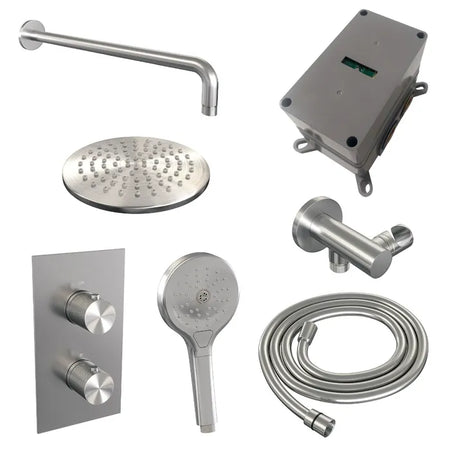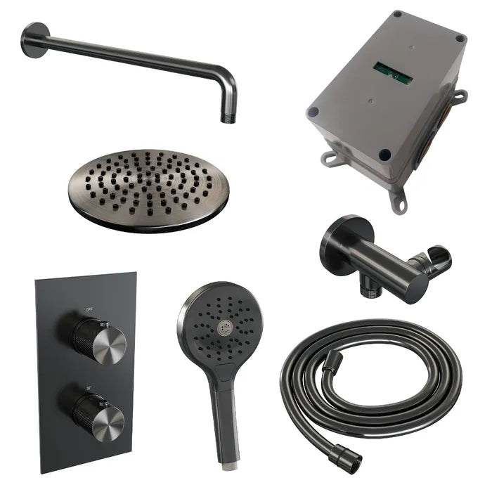 Brauer thermostatische inbouw regendouche met 3-weg omstel - edition, carving of stripe - verschillende kleuren - met gebogen muurarm