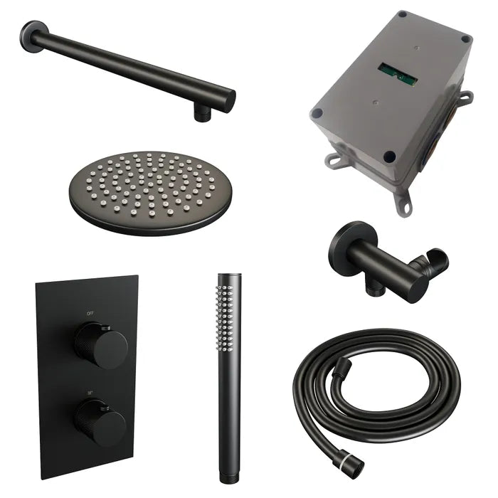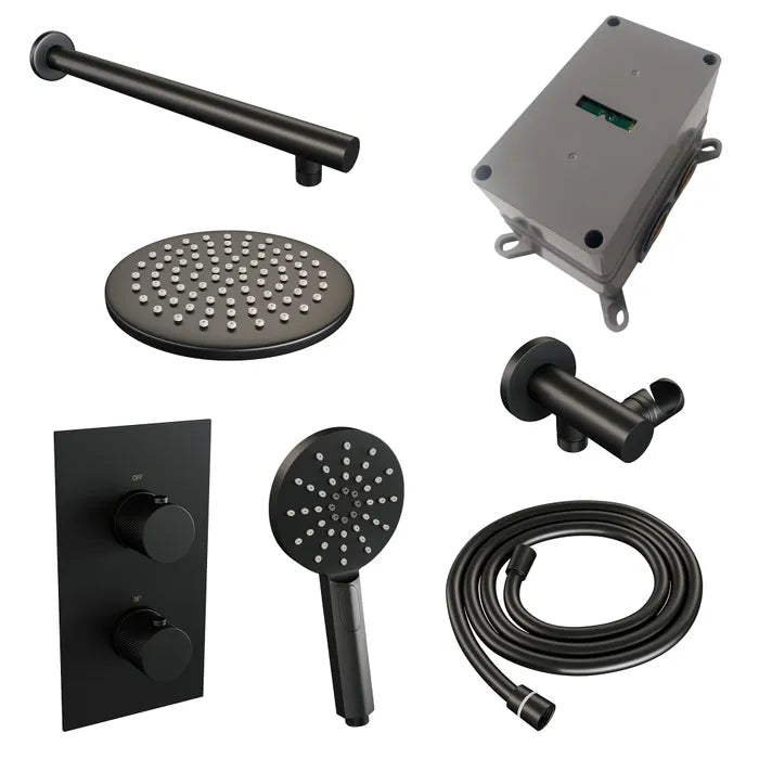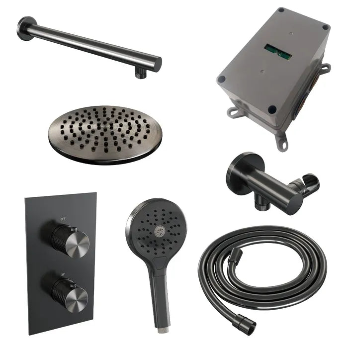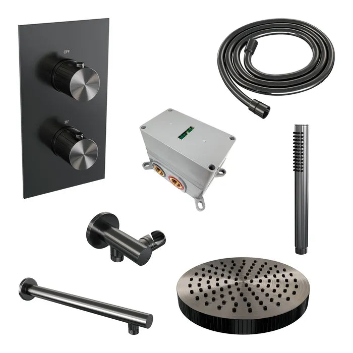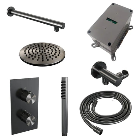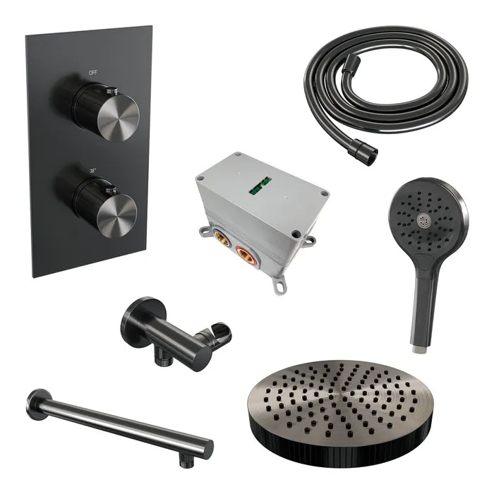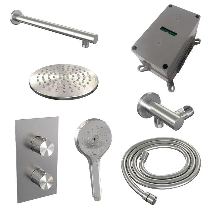 Brauer thermostatische inbouw regendouche met 3-weg omstel - edition, carving of stripe - verschillende kleuren - met rechte muurarm