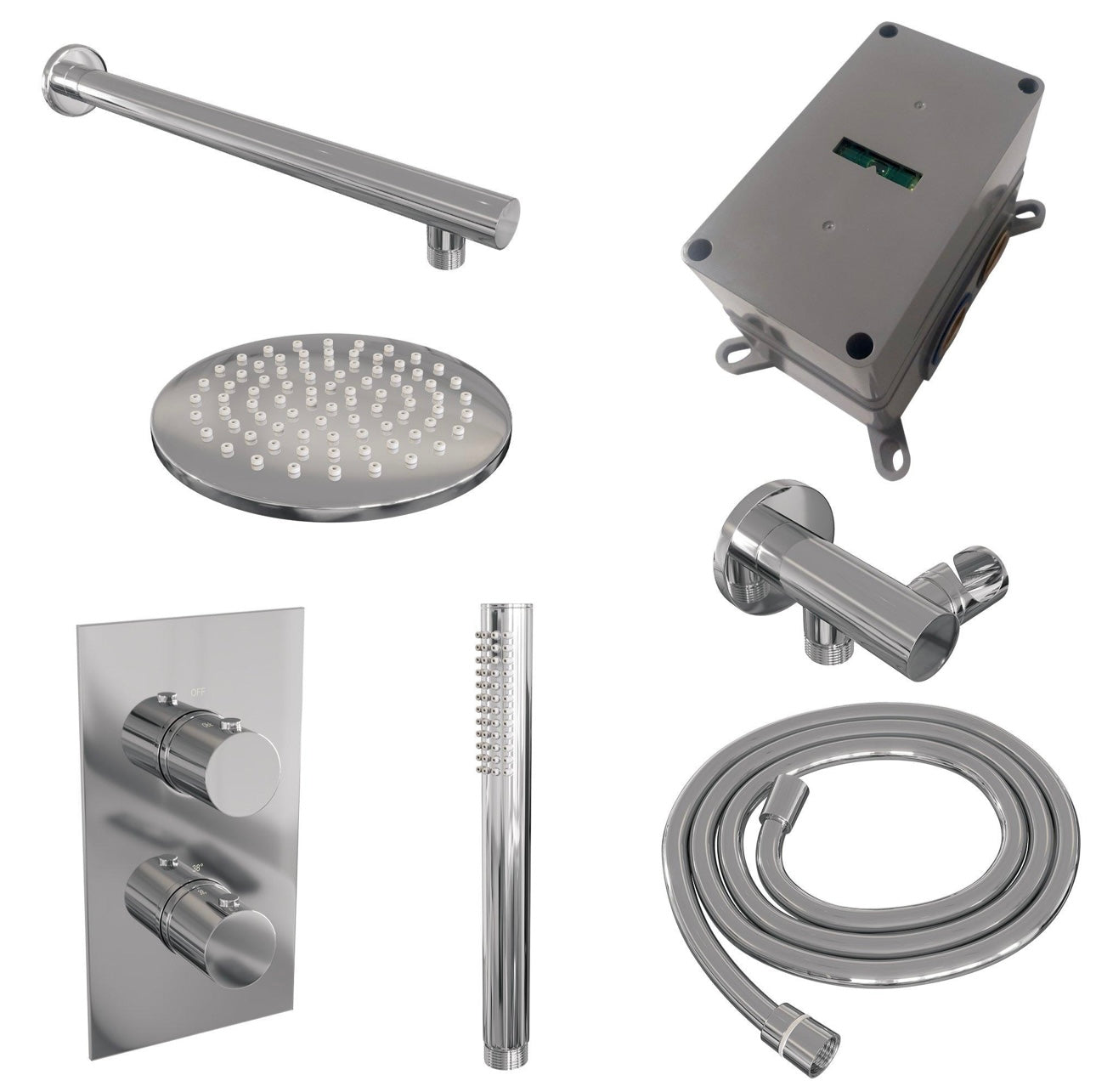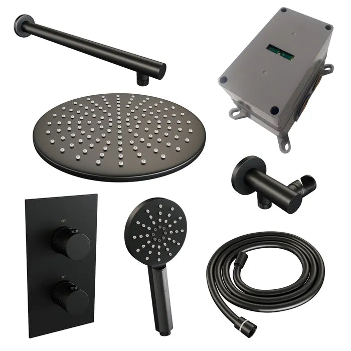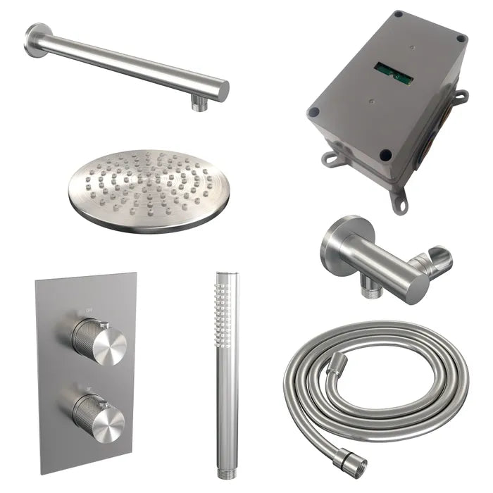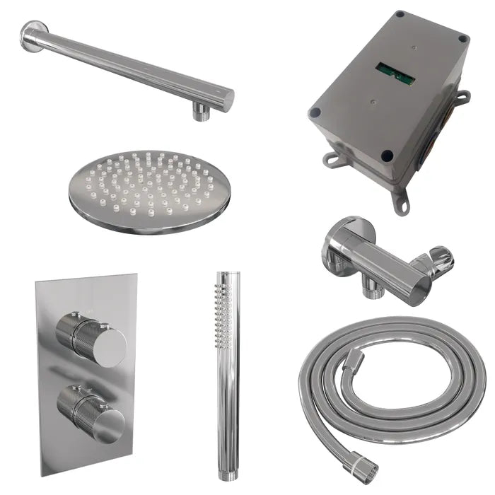 Deze inbouw regendouche is een complete inbouwdouche set waarmee je je badkamer laat schitteren. De douche straalt luxe uit en is zeer comfortabel. Met de inbouwthermostaat bepaal je je gewenste temperatuur. Ook zit er temperatuurbegrenzing op waardoor het water eerst niet warmer wordt dan 38 graden, maar pas wanneer de beveiliging eraf wordt gehaald. Extra veilig voor de kids! Met de stopkranen switch je tussen de hoofddouche en handdouche.