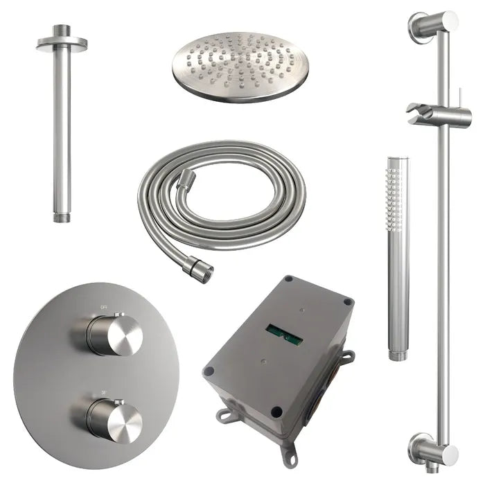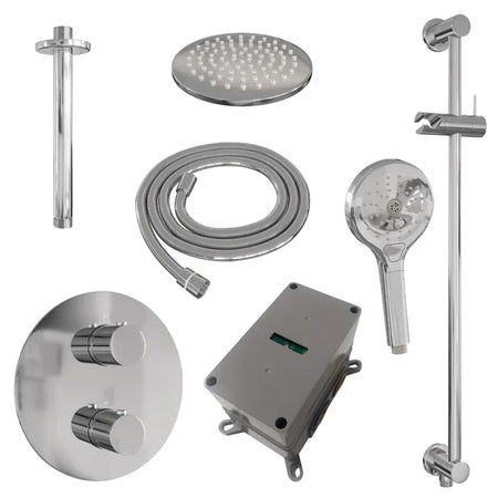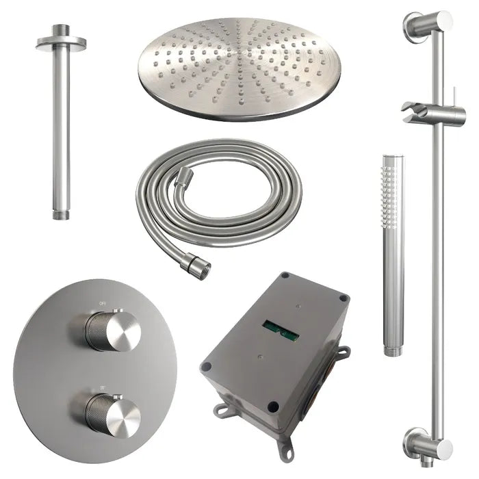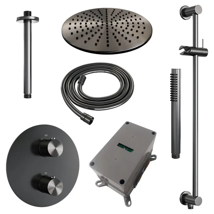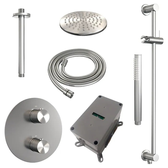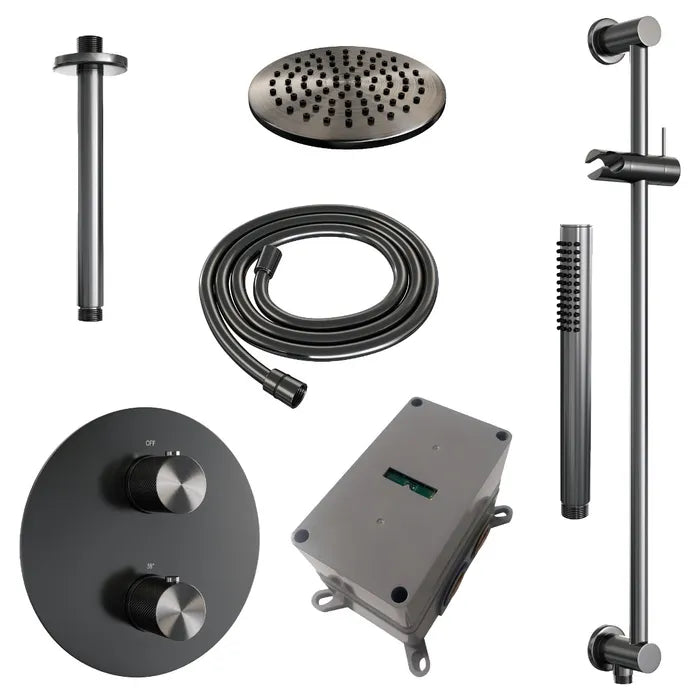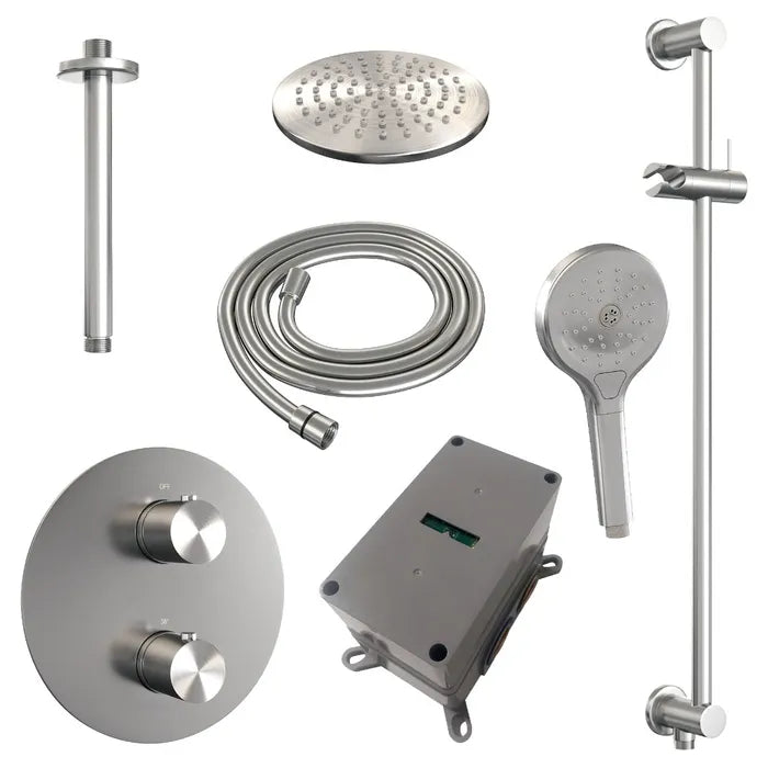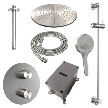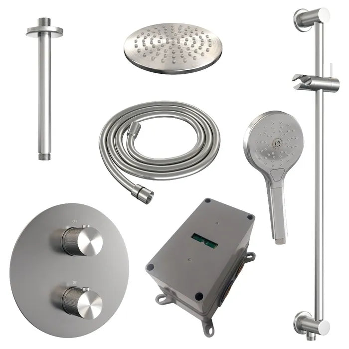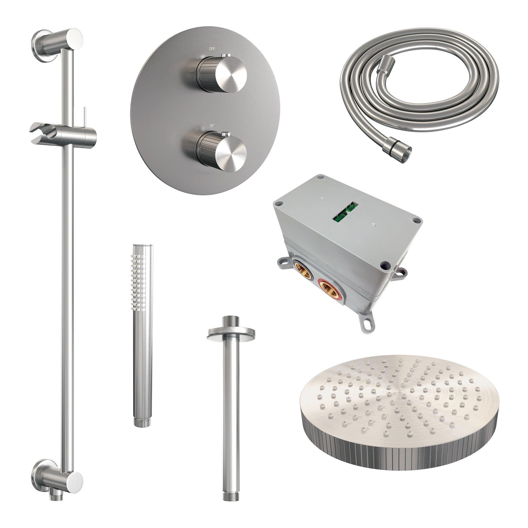 Brauer thermostatische inbouw regendouche met 3-weg omstel en ronde afdekplaat - edition, carving of stripe - in verschilleden kleuren - met glijstang - met plafondarm