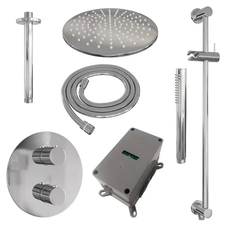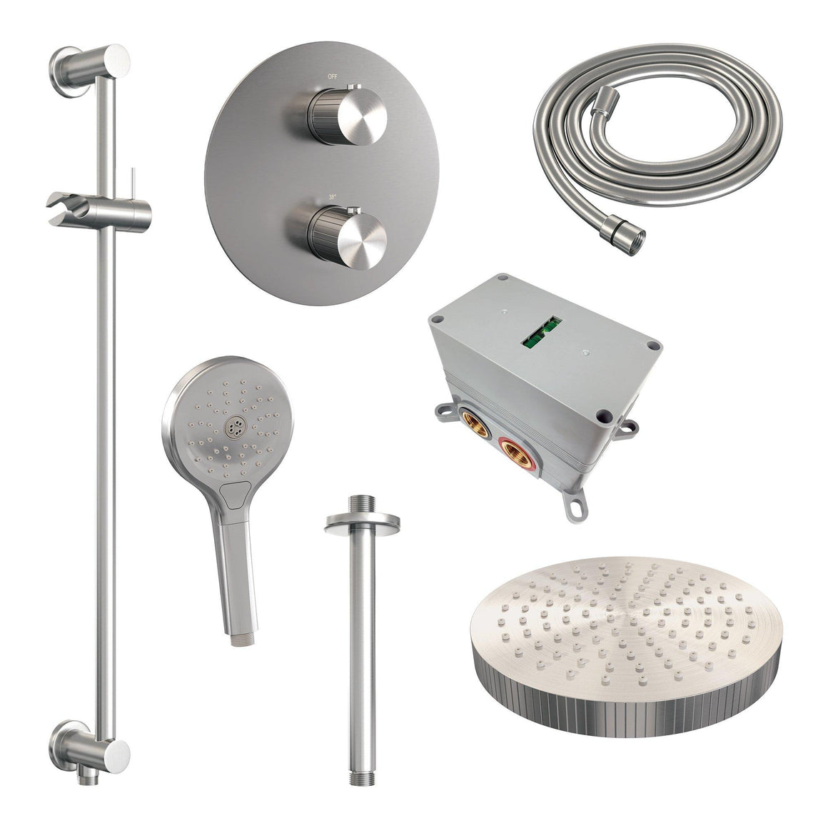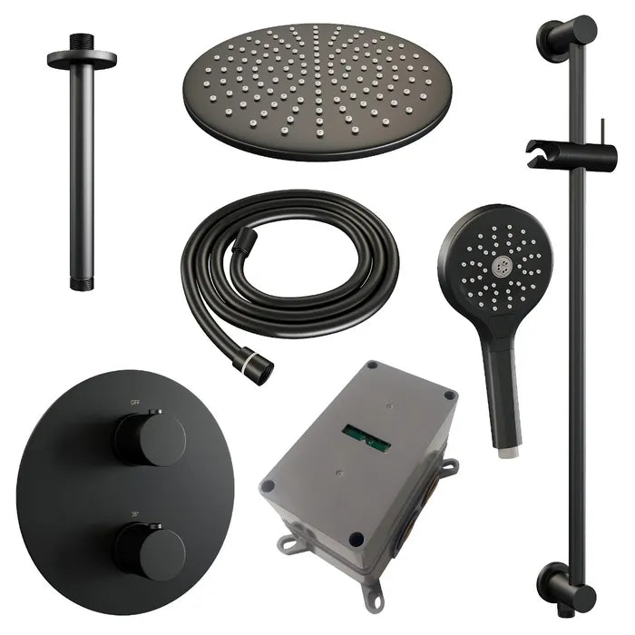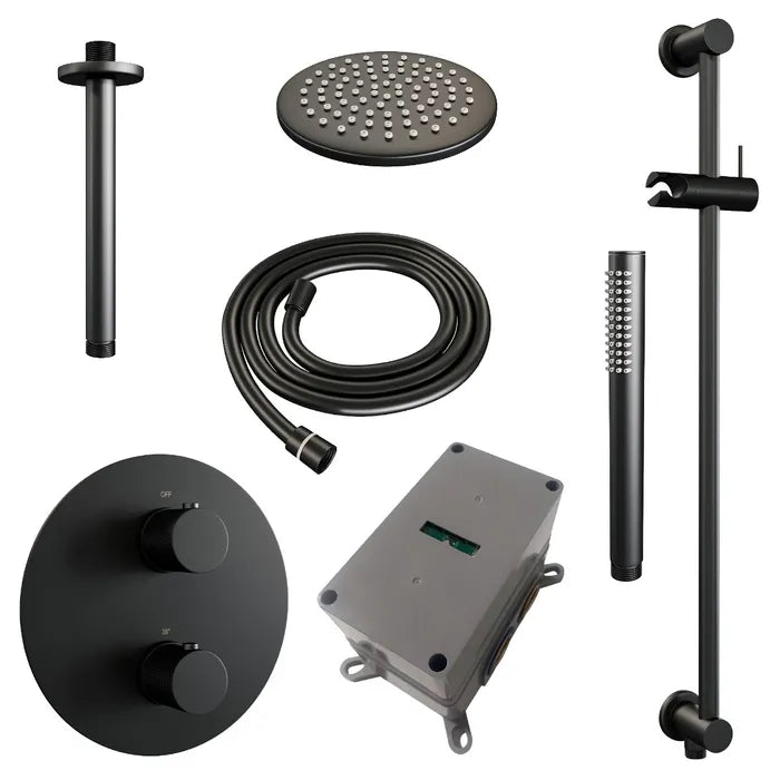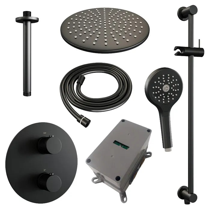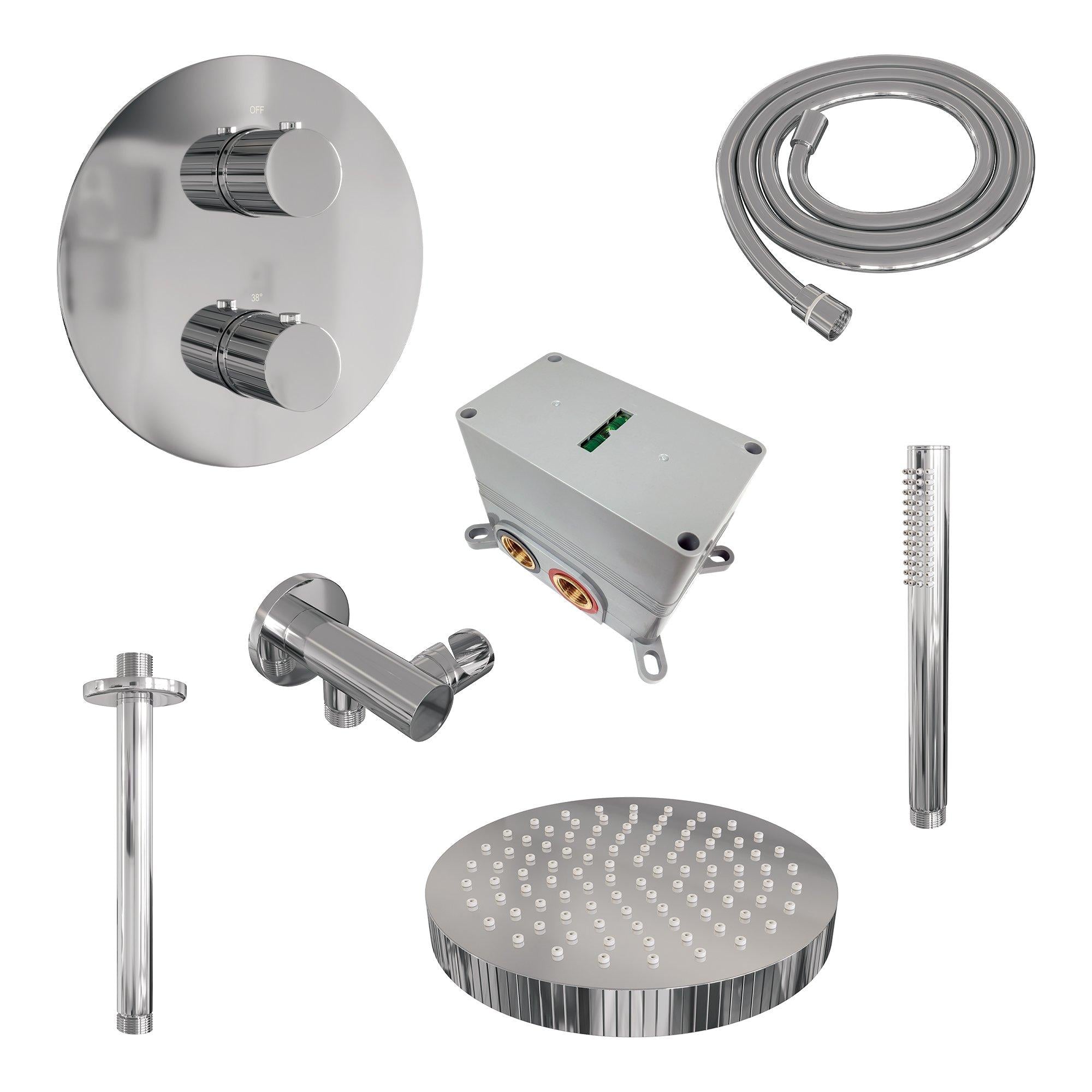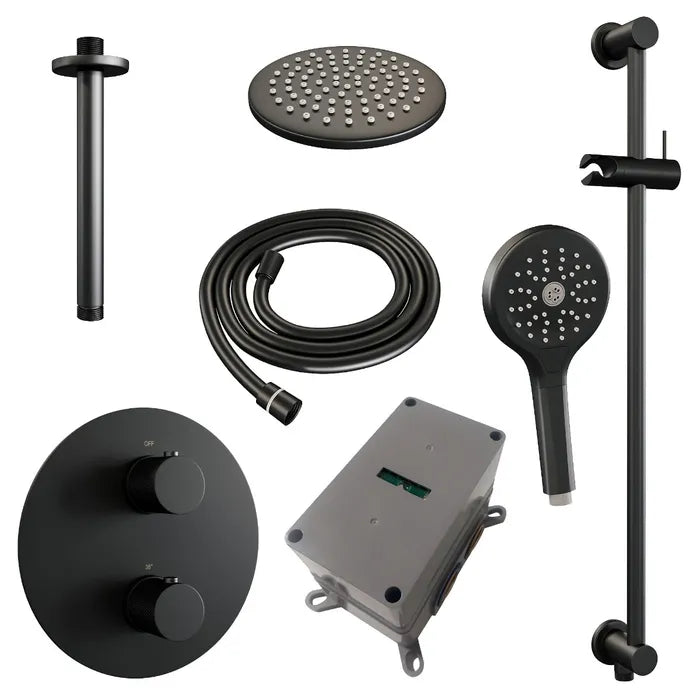 Brauer thermostatische inbouw regendouche met 3-weg omstel en ronde afdekplaat - edition, carving of stripe - in verschilleden kleuren - met glijstang - met plafondarm