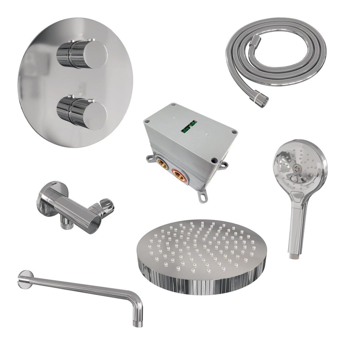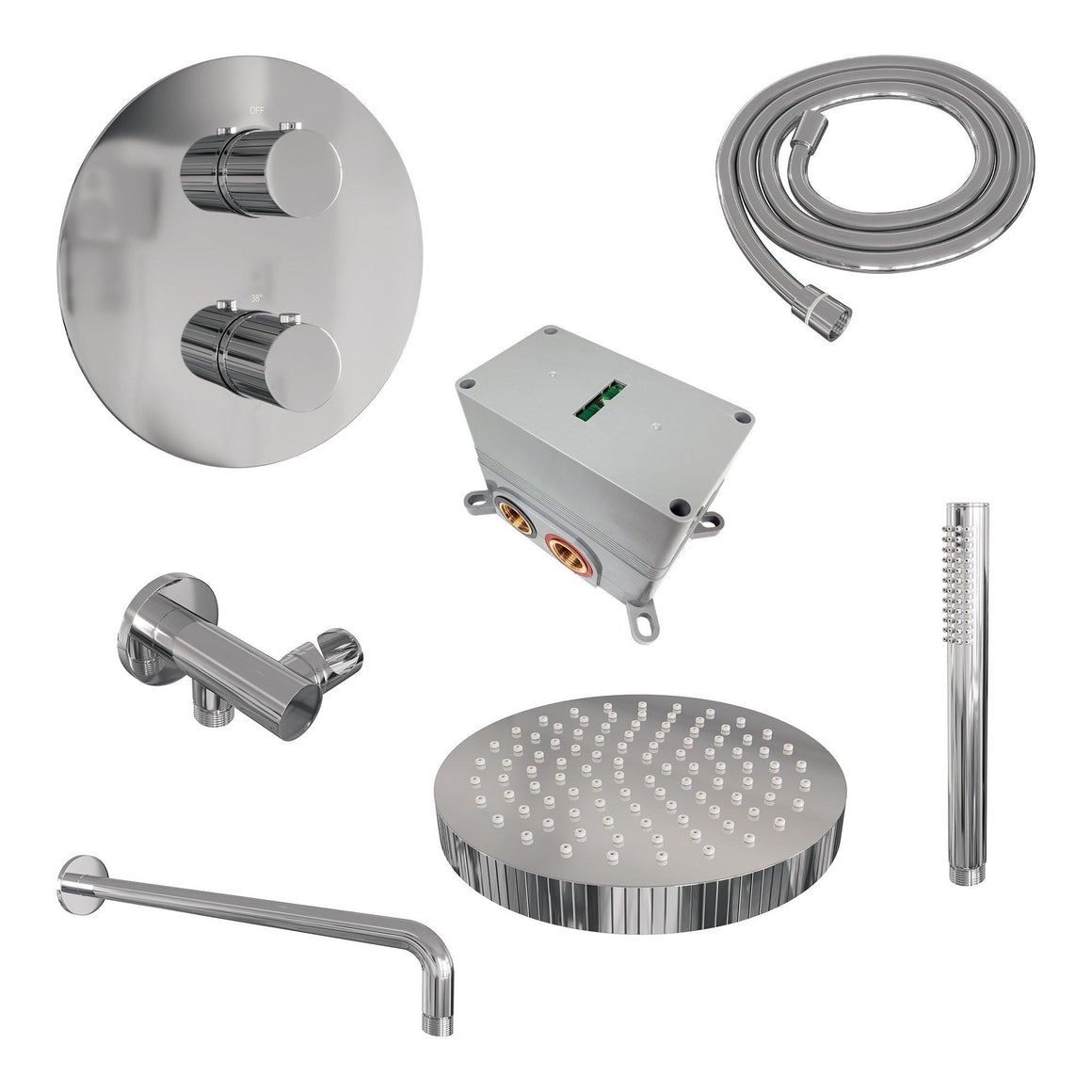 Veiligheid voorop en dat heeft de inbouw thermostaat uit dit setje begrepen! De thermostaat heeft namelijk een temperatuurbegrenzer op 38 graden, waardoor je de kraan niet zomaar heter kan draaien dan dit. Ideaal natuurlijk met kleine kinderen in huis die dol zijn op het draaien aan knopjes! Wel fan van heet douchen? Dan kan je de beveiliging eraf halen en 'm lekker heet draaien. Voor iedereen dus de perfecte temperatuur!