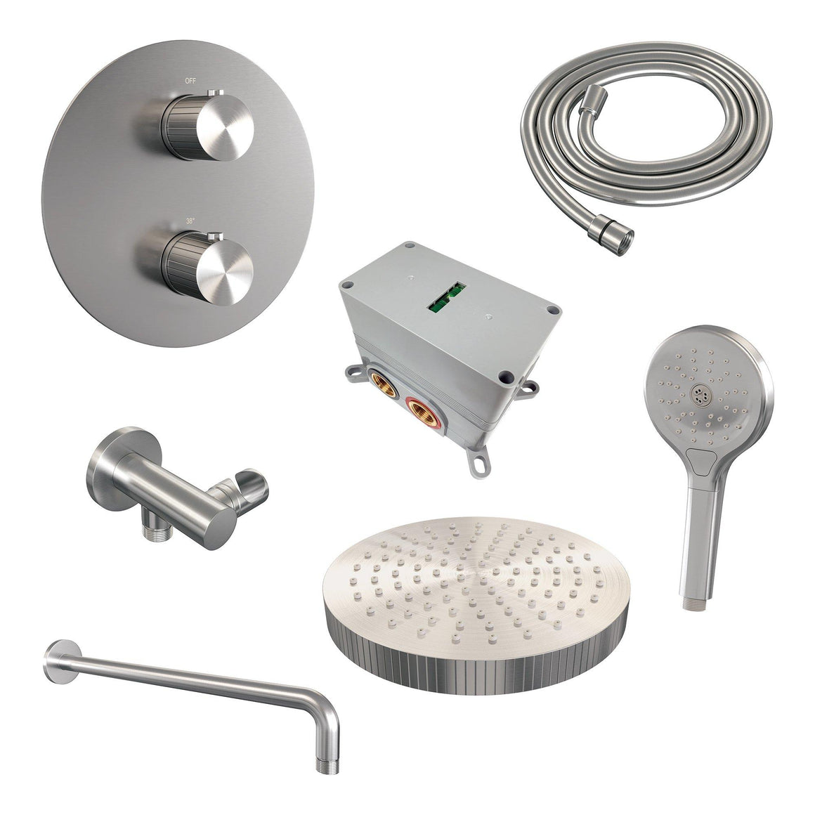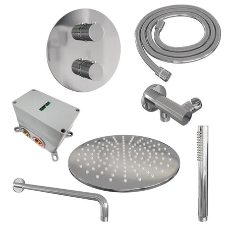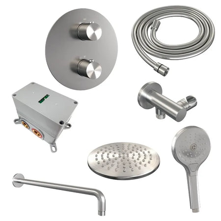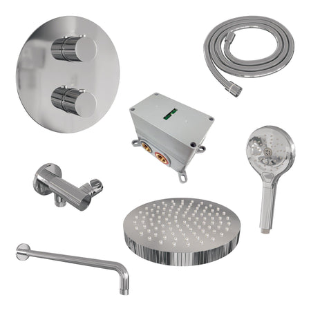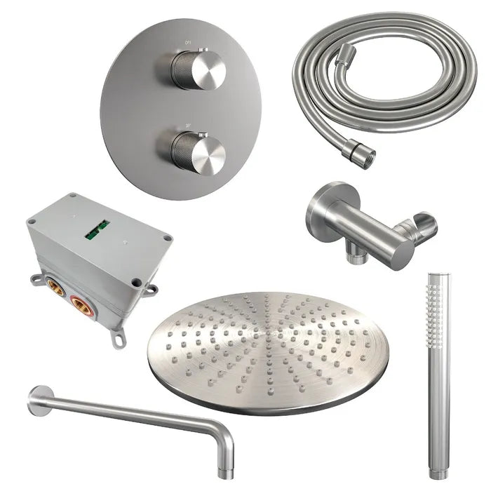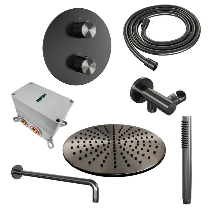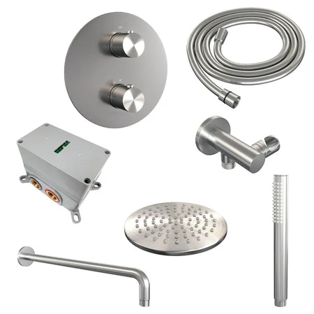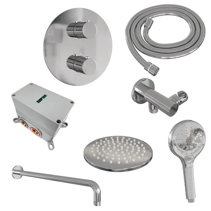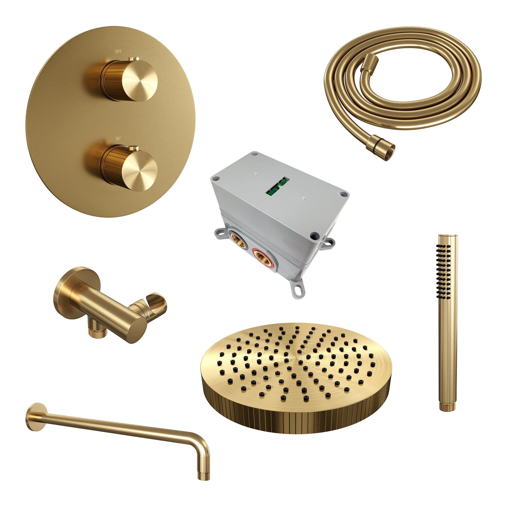 Brauer thermostatische inbouw regendouche met 3-weg omstel en ronde afdekplaat - edition, carving of stripe - verschillende kleuren - met gebogen muurarm