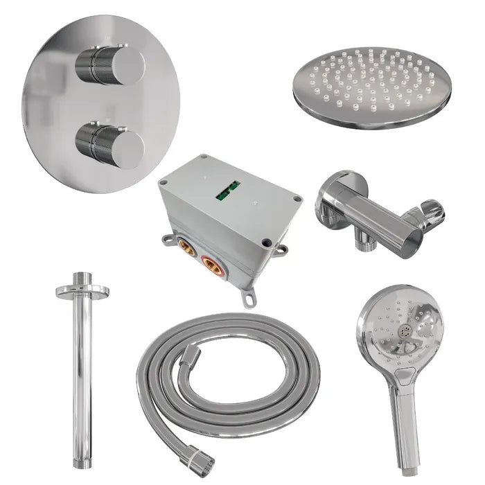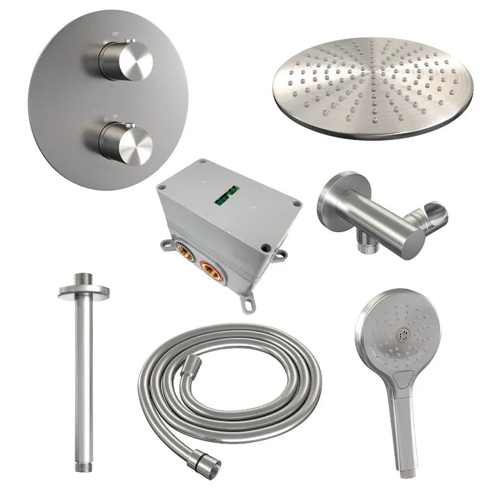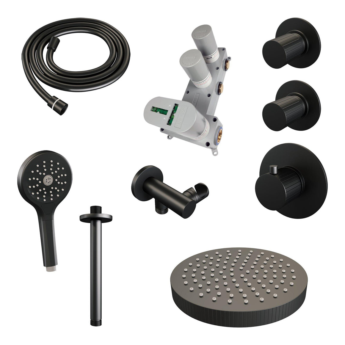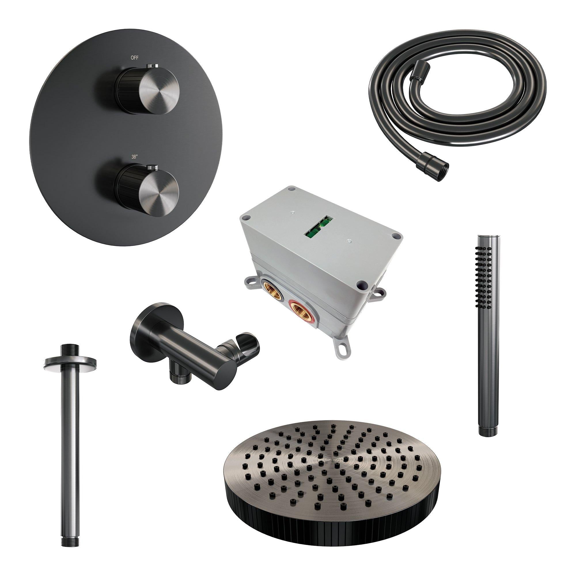Brauer thermostatische inbouw regendouche met 3-weg omstel en ronde afdekplaat - edition, carving of stripe - verschillende kleuren - met plafondarm