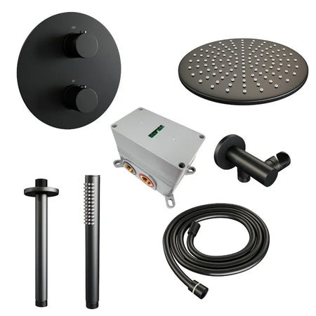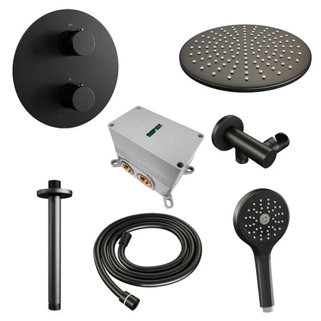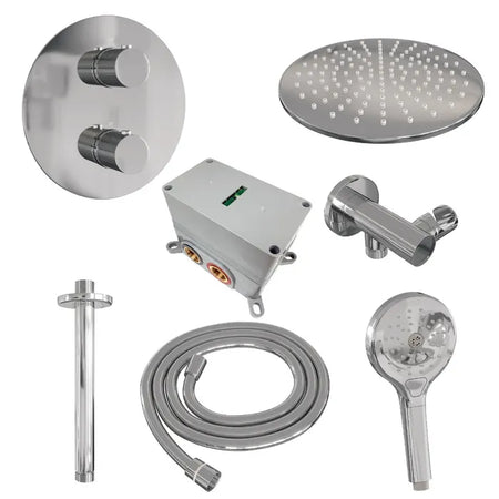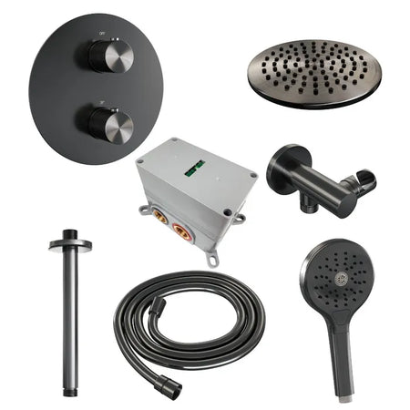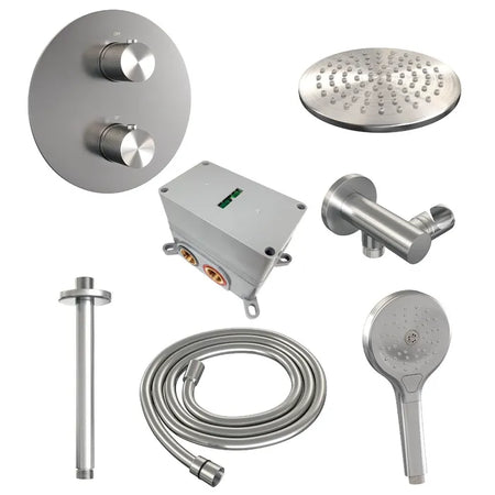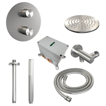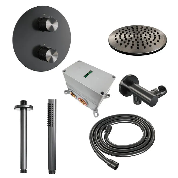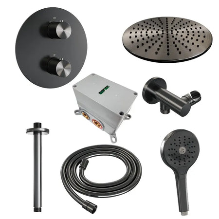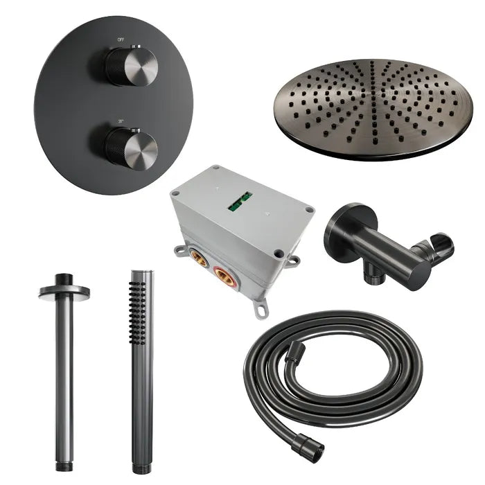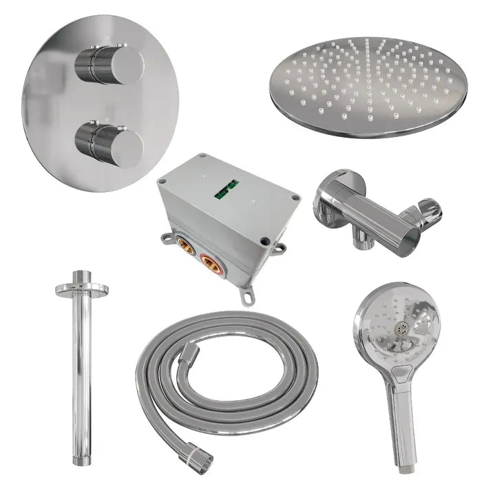 Brauer thermostatische inbouw regendouche met 3-weg omstel en ronde afdekplaat - edition, carving of stripe - verschillende kleuren - met plafondarm