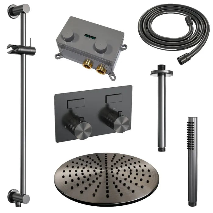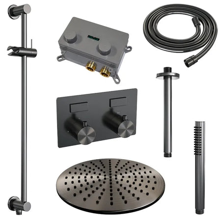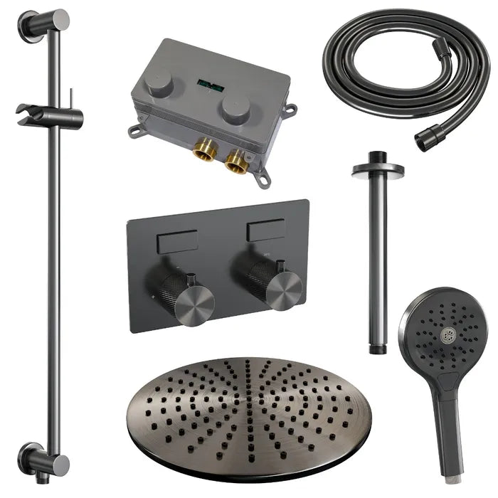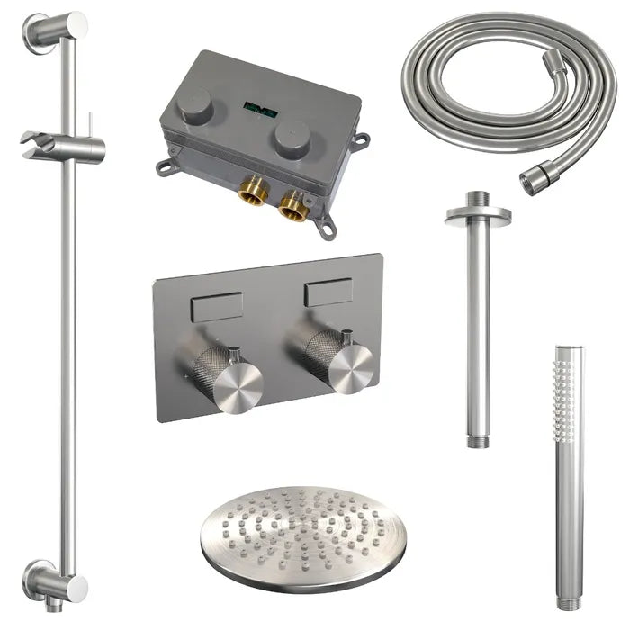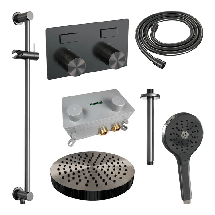 Brauer thermostatische inbouw regendouche met drukknoppen - edition, carving of stripe - in verschilleden kleuren - met glijstang - met plafondarm