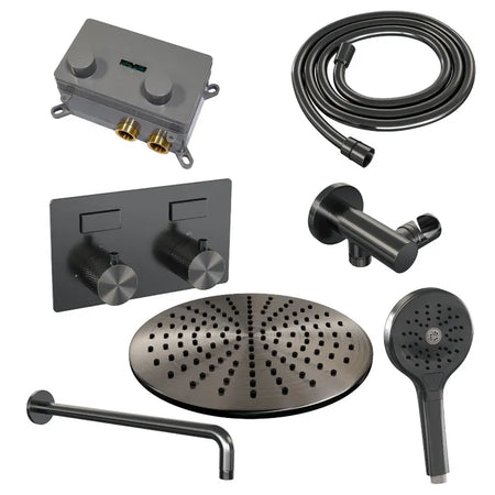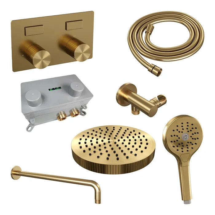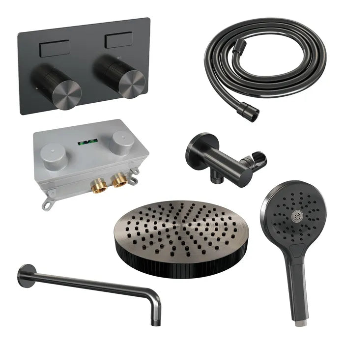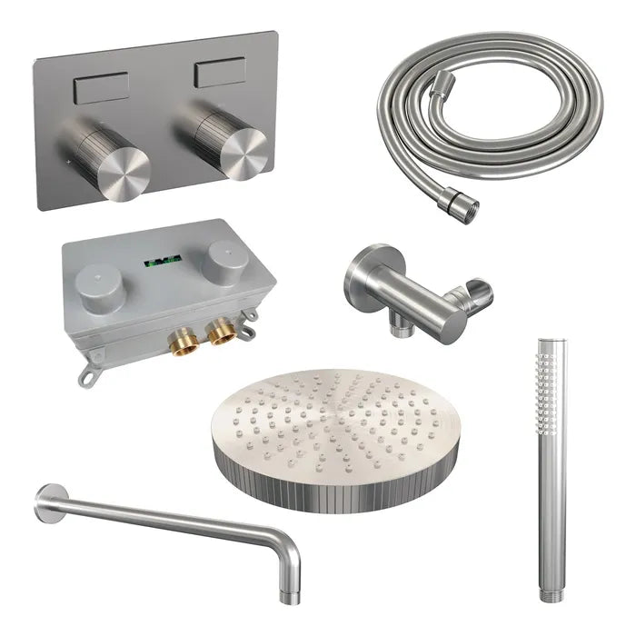 Brauer thermostatische inbouw regendouche met drukknoppen - edition, carving of stripe - verschillende kleuren - met gebogen muurarm