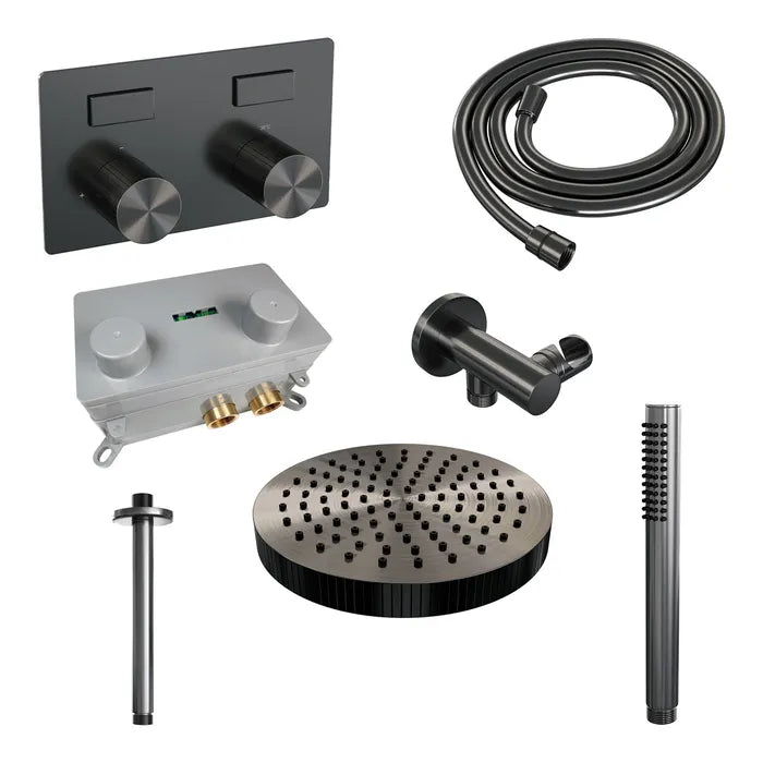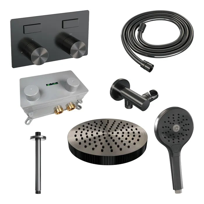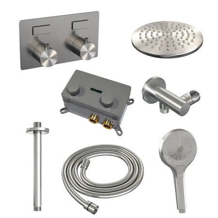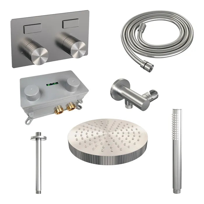 Brauer thermostatische inbouw regendouche met drukknoppen - edition, carving of stripe - verschillende kleuren - met plafondarm