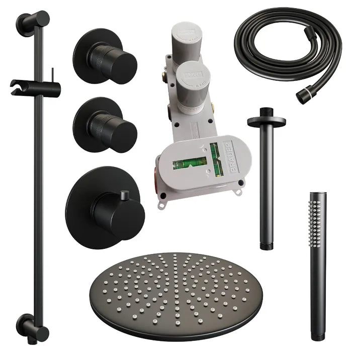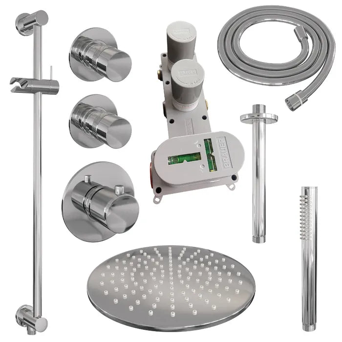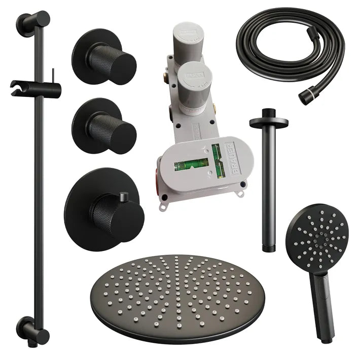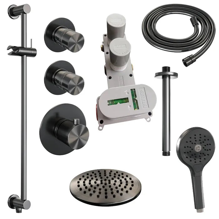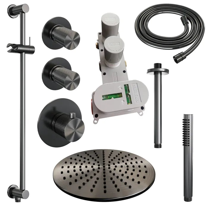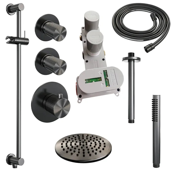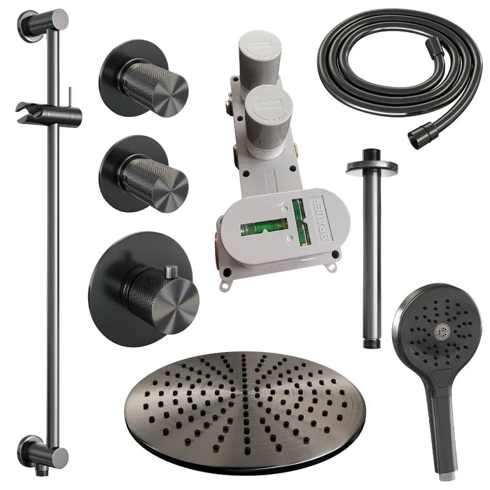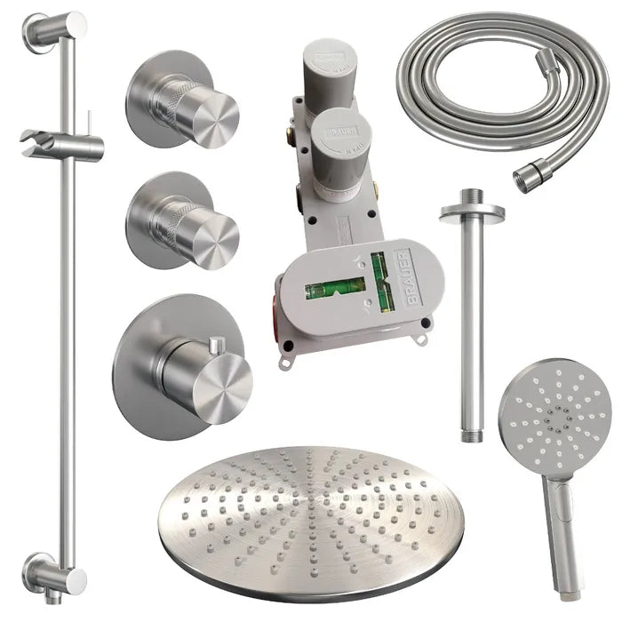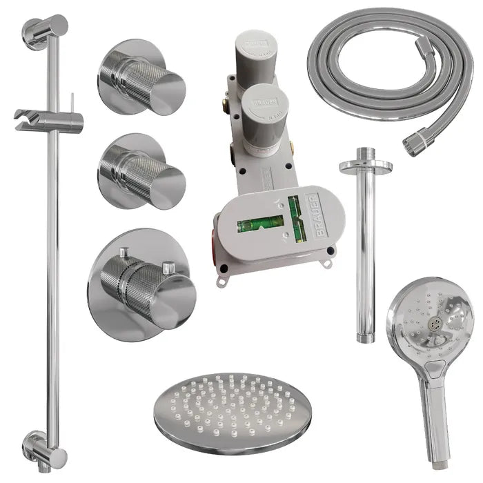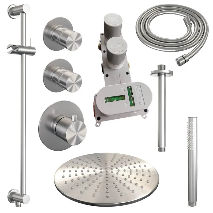 Brauer thermostatische inbouw regendouche met stopkranen - edition, carving of stripe - in verschilleden kleuren - met glijstang - met plafondarm