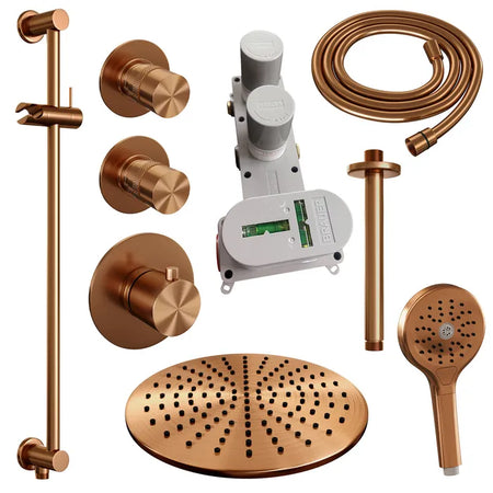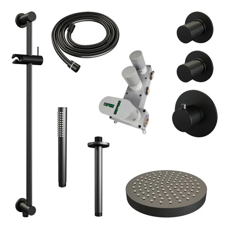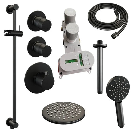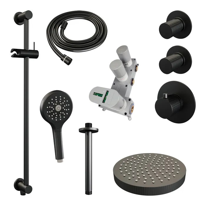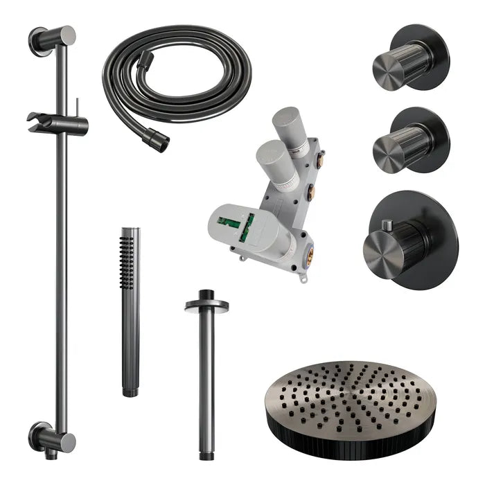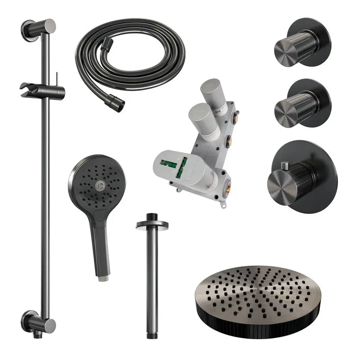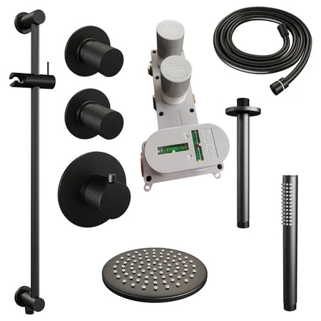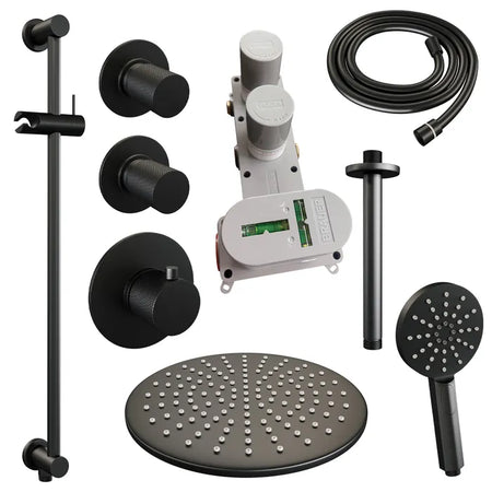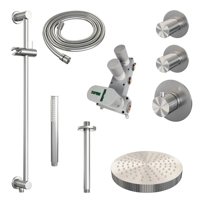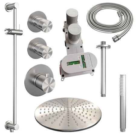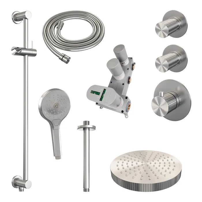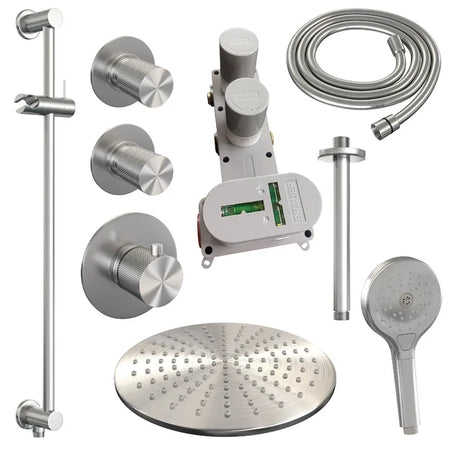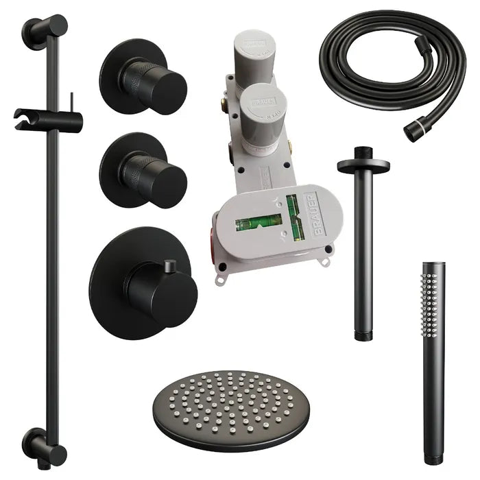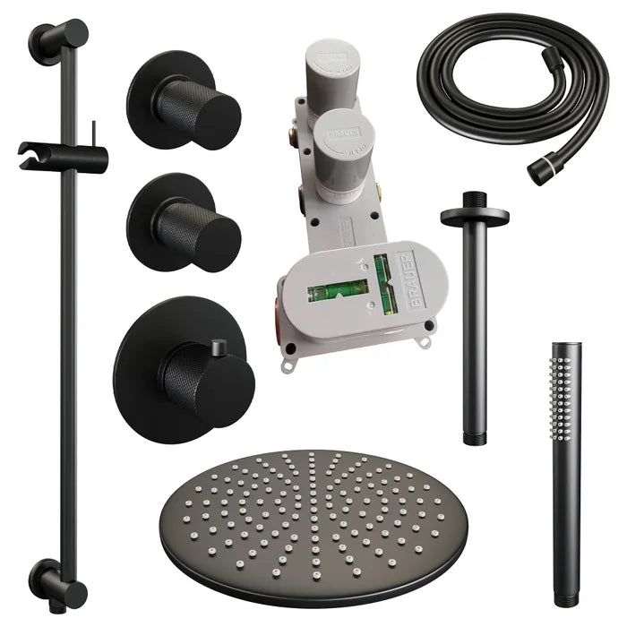 Brauer thermostatische inbouw regendouche met stopkranen - edition, carving of stripe - in verschilleden kleuren - met glijstang - met plafondarm