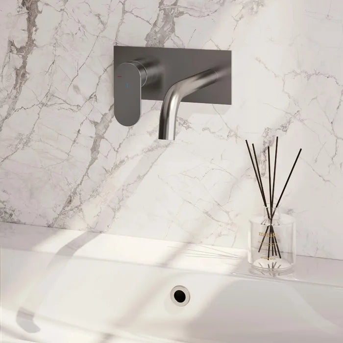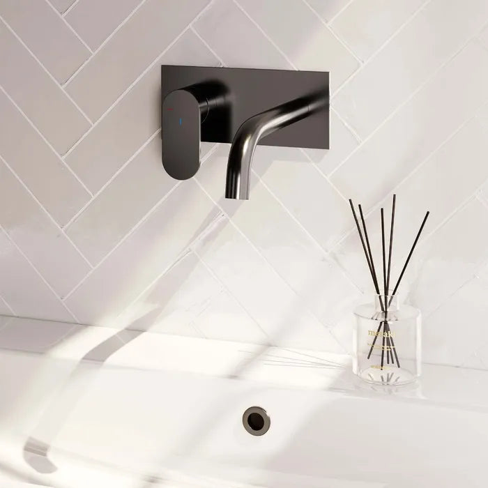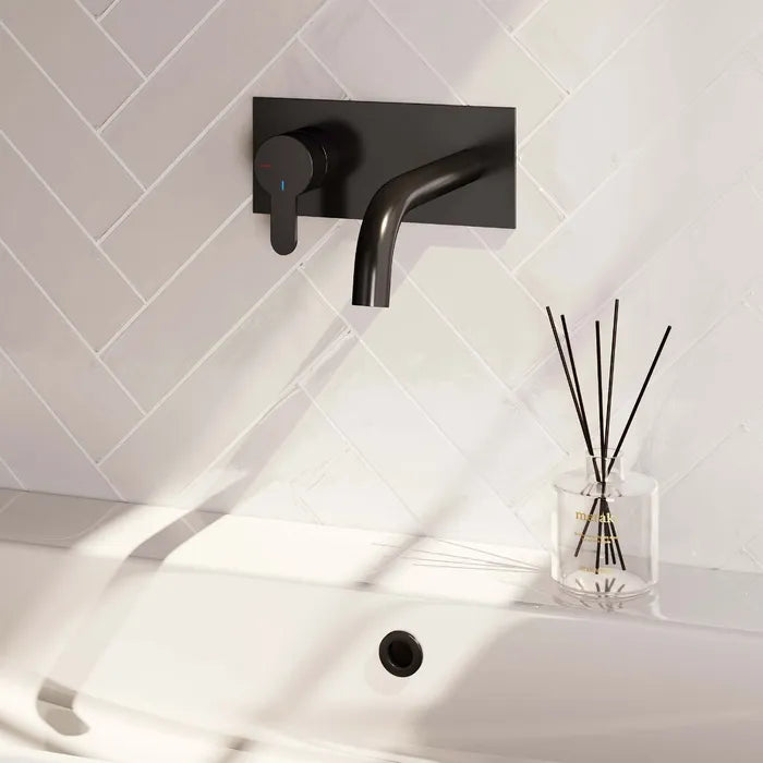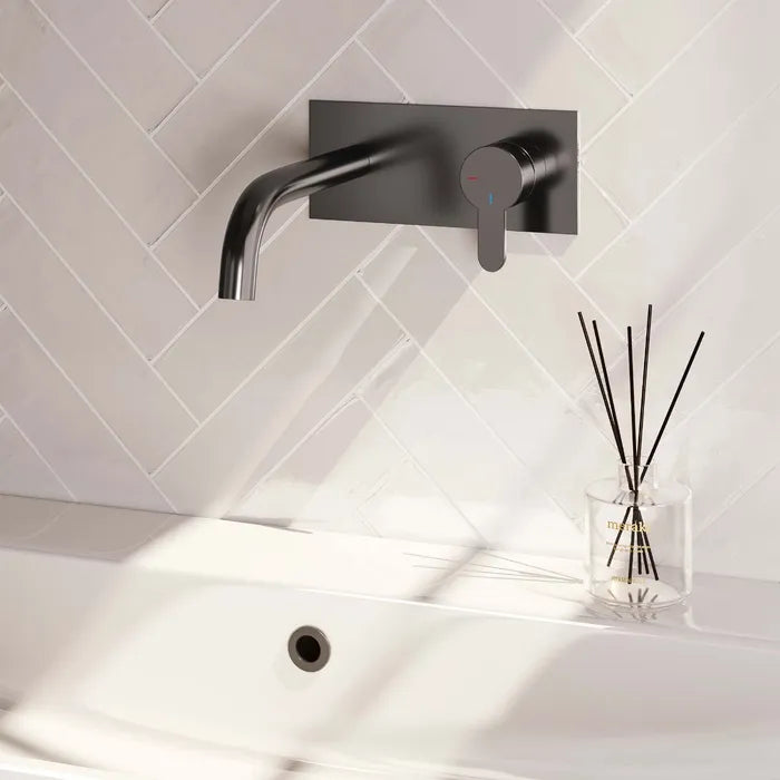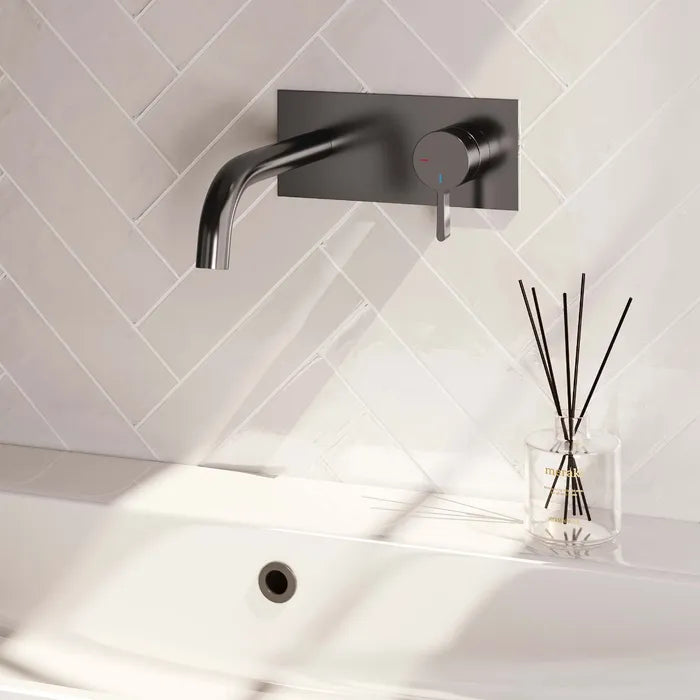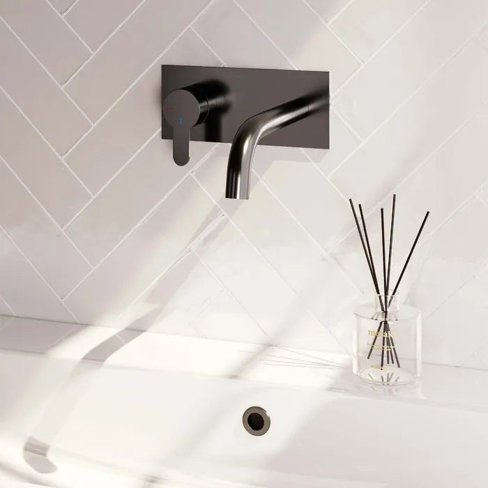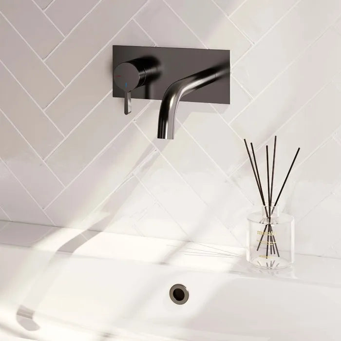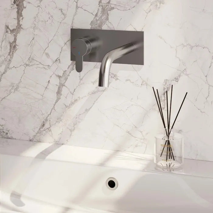 Brauer - Wastafelkraan inbouw met gebogen uitloop - Met afdekplaat - Verkrijgbaar in verschillende kleuren - Edition, carving of stripe