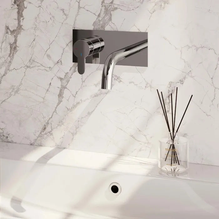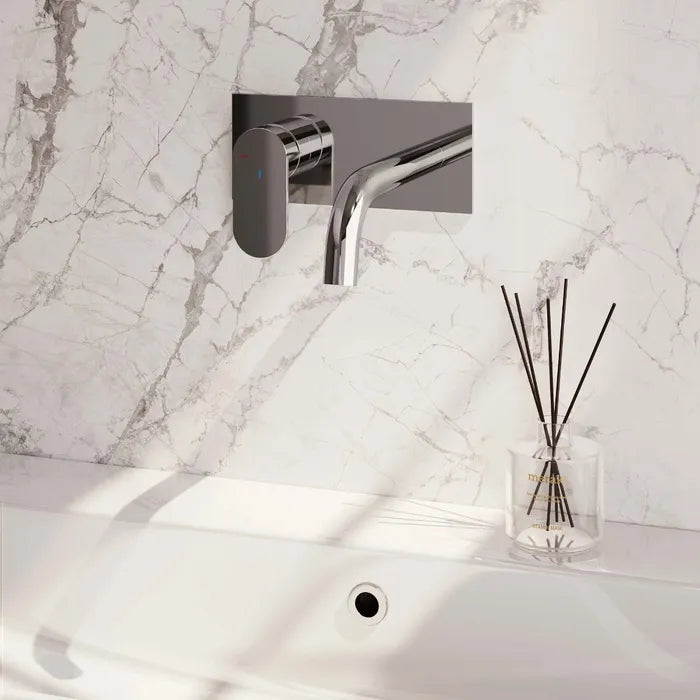 Brauer Edition, carving of stripe | Inbouw wastafelkraan met gebogen uitloop en rozetten