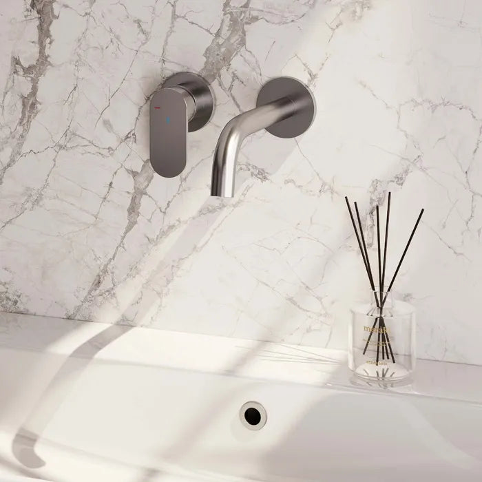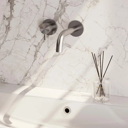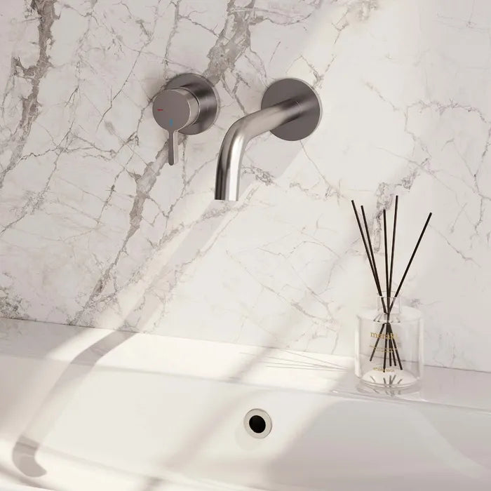 Brauer Edition, carving of stripe | Inbouw wastafelkraan met gebogen uitloop en rozetten