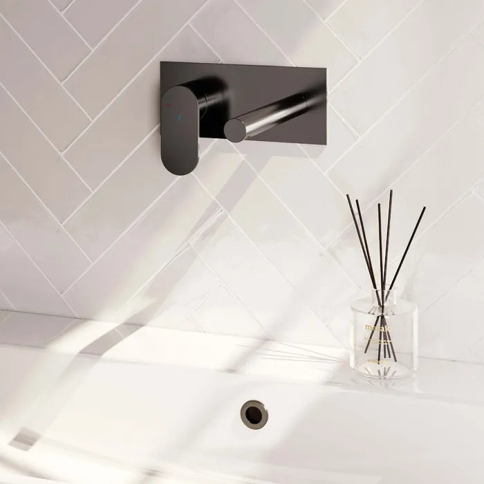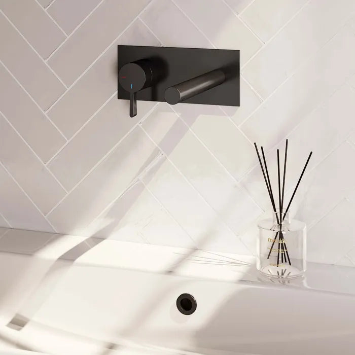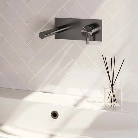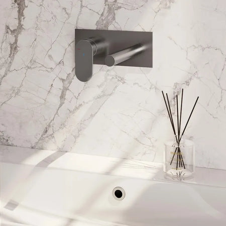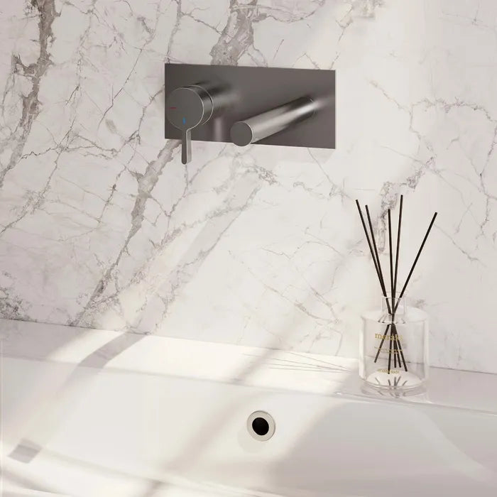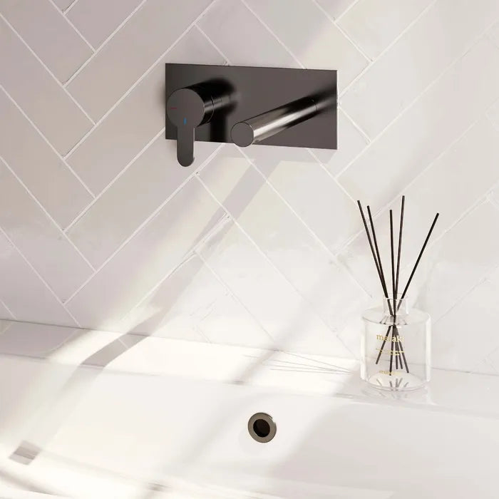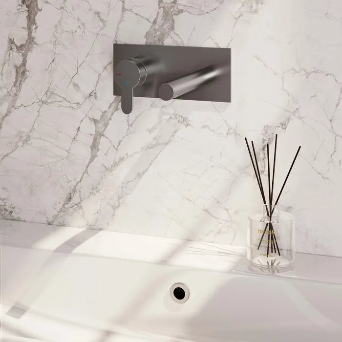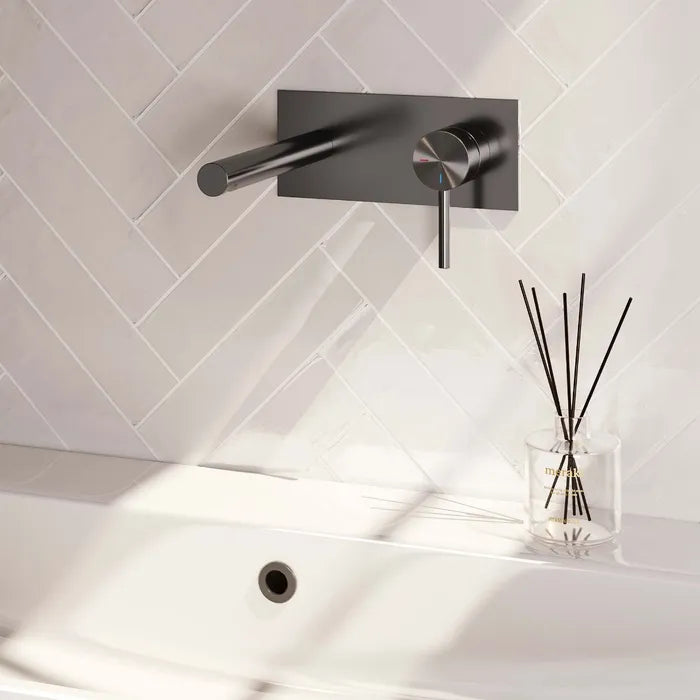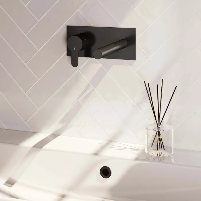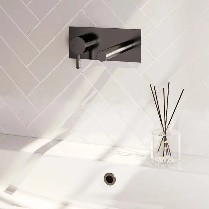 Brauer - Wastafelkraan inbouw met rechte uitloop - Met afdekplaat - Verkrijgbaar in verschillende kleuren - Edition, carving of stripe