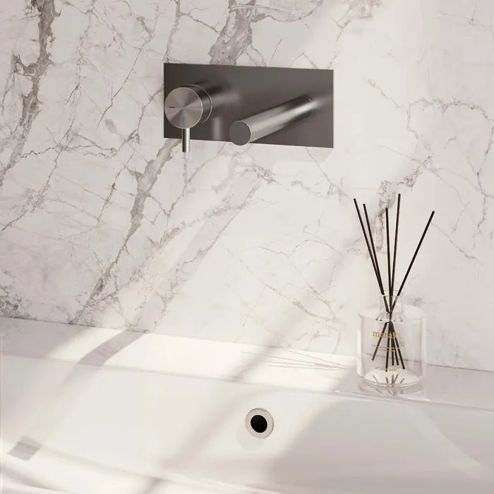Brauer Edition, carving en stripe | Inbouw wastafelkraan met rechte uitloop en afdekplaat