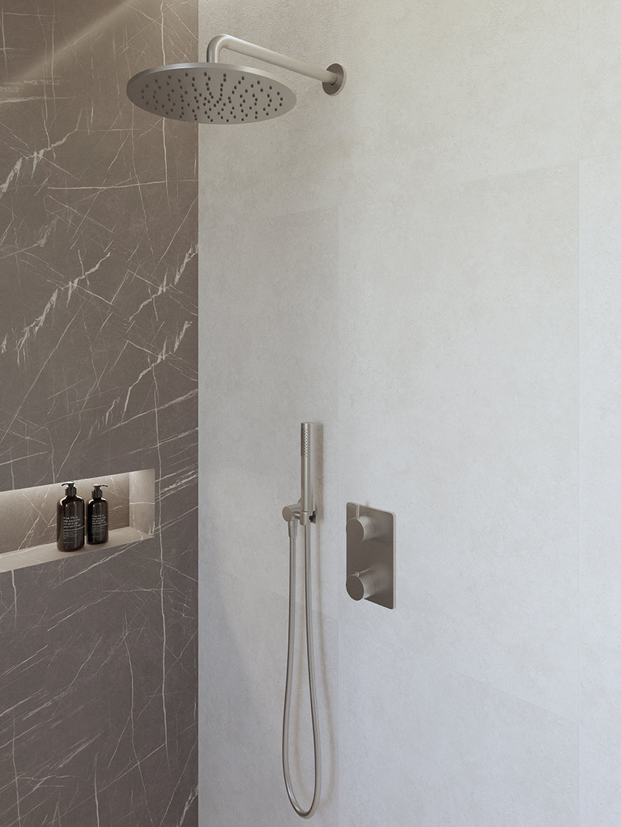 Caral inbouwthermostaat compleet met hoofddouche 30 cm en staafhanddouche geborsteld staal
