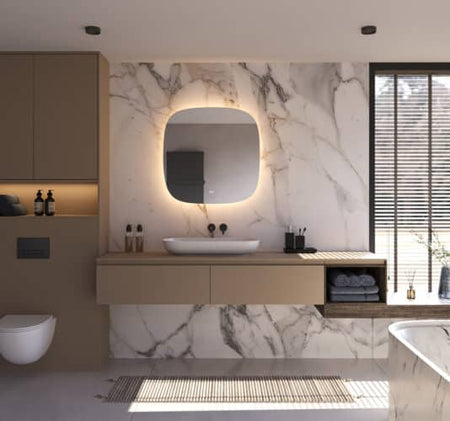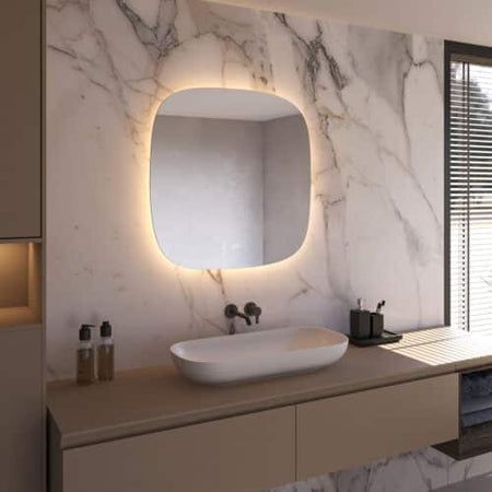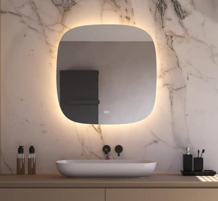 De verlichting schijnt vanachter de spiegel fraai en sfeervol over de wand. De geïntegreerde spiegelverwarming voorkomt dat de spiegel beslaat na bv het douchen. De spiegel wordt volledig aansluitklaar geleverd inclusief de benodigde bevestigingsmaterialen.