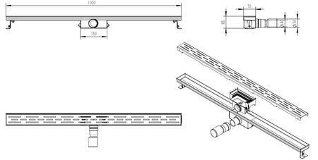 Eco douchegoot met rooster 100 x 7 cm RVS