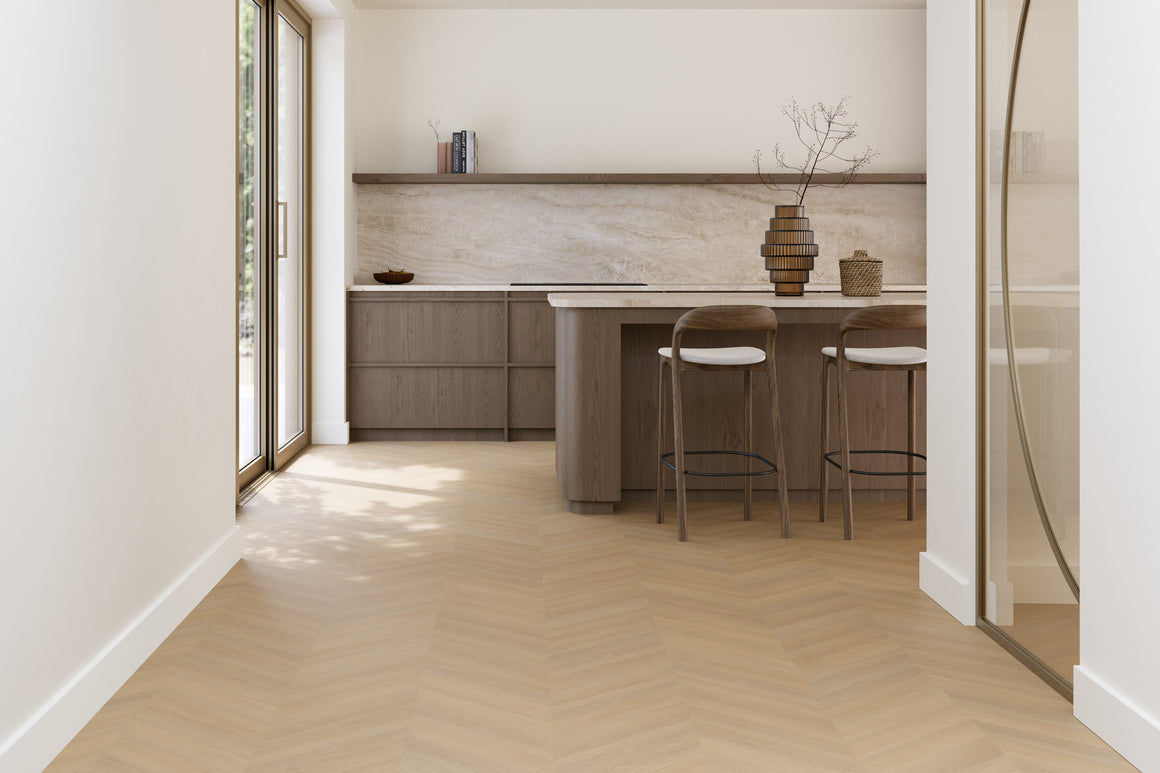 De uitstraling van een houten vloer. Van landelijk tot stoer en van rustig tot gedurfd. Het kan met een pvc-vloer uit de Futuro serie. Door de verschillende groottes in planken, én de mogelijkheid om de vloer in een lange plank, visgraat of Hongaarse punt patroon patroon te leggen, creëer je jouw uitstraling. Daarnaast is onze Futuro serie ultra mat!