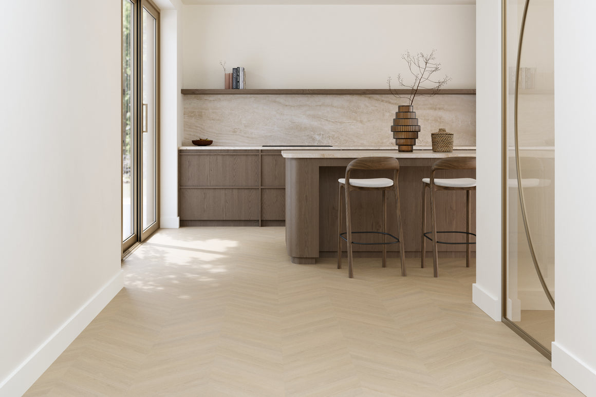 De Futuro Hongaarse punt wordt gelegd in een hoek van 120 graden. Dit legpatroon staat bekend om zijn subtiele en verfijnde uitstraling, waarmee je een ruimte een elegante en luxueuze sfeer kunt geven.