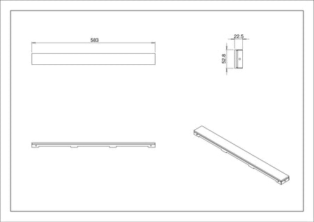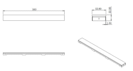 Glasrooster voor douchegoot 60 x 7 cm glanzend zwart
