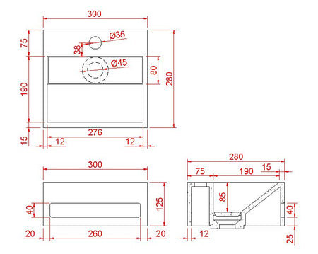 Julia fontein - 30 x 28 x 12,5 cm - Solid surface - Mat zwart