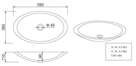 Kim waskom ovaal 59 x 35 x 11 cm - solid surface - mat wit