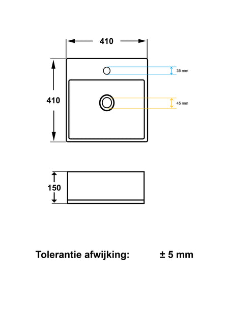 Larx waskom vierkant 41 x 41 x 15 cm - keramiek - glans wit