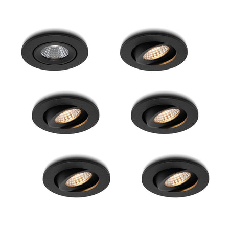 LED-inbouwspot set 6 stuks Midi zwart 3W dimbaar