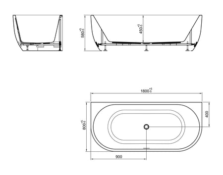 Liora half vrijstaand ligbad 180 x 80 cm acryl glans wit met waste glans wit