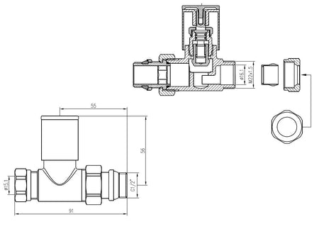 luxe radiatorventiel 1/2''x15 (M22) knel recht chroom