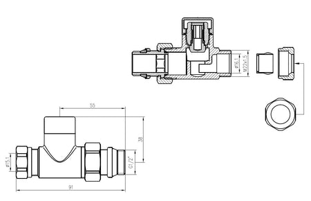 luxe regeltee 1/2''x15 (M22) knel recht chroom